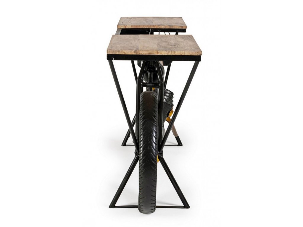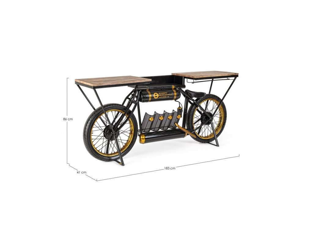 Tento barový konzolový stůl v MOTO designu je originálním a stylovým doplňkem pro každý interiér. Jeho ocelový rám poskytuje pevnost a stabilitu, zatímco vrchní deska z mangového dřeva přidává přirozený a rustikální nádech.