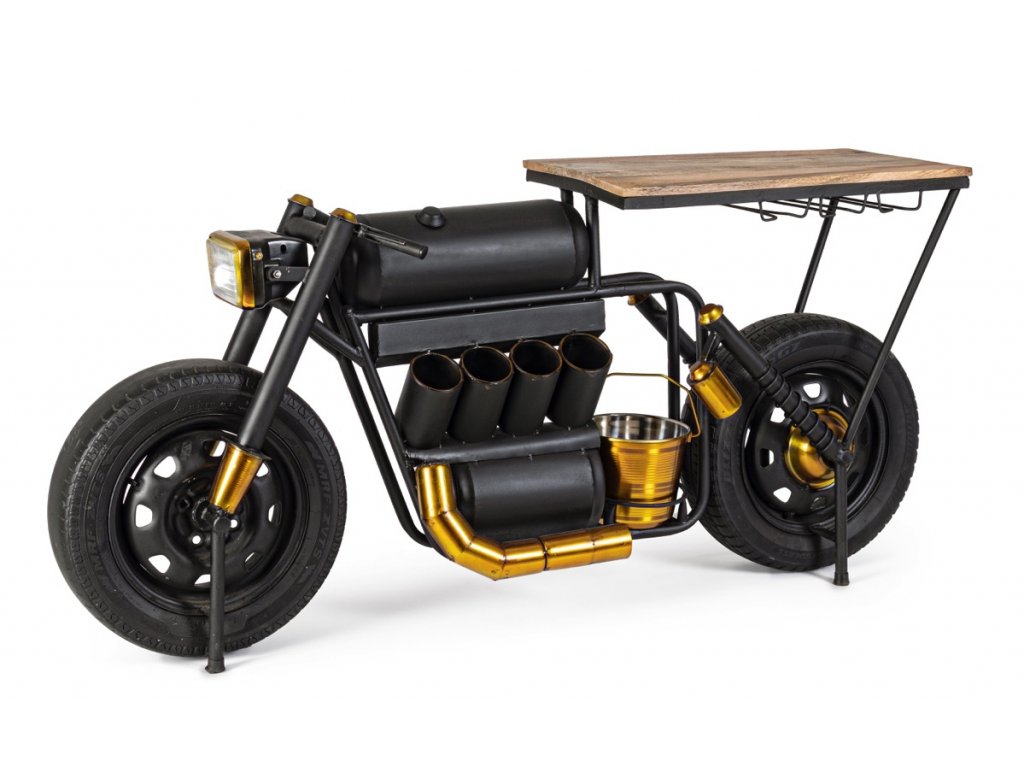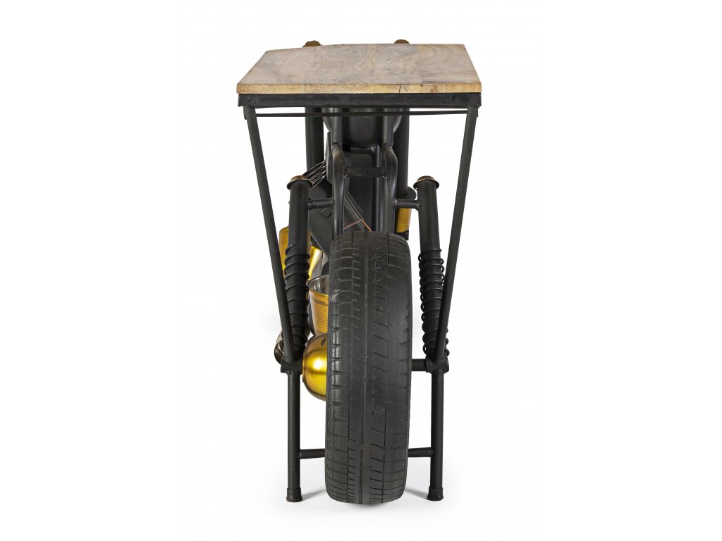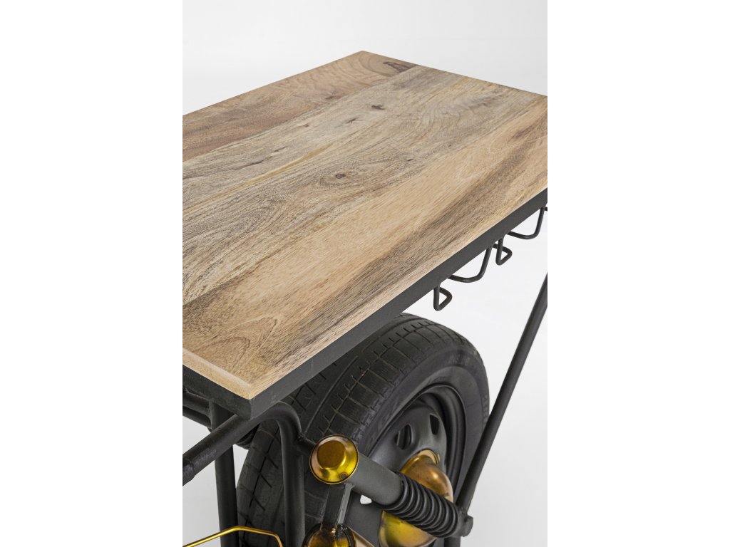 Tento barový konzolový stůl v MOTO designu je originálním a stylovým doplňkem pro každý interiér. Jeho ocelový rám poskytuje pevnost a stabilitu, zatímco vrchní deska z mangového dřeva přidává přirozený a rustikální nádech.