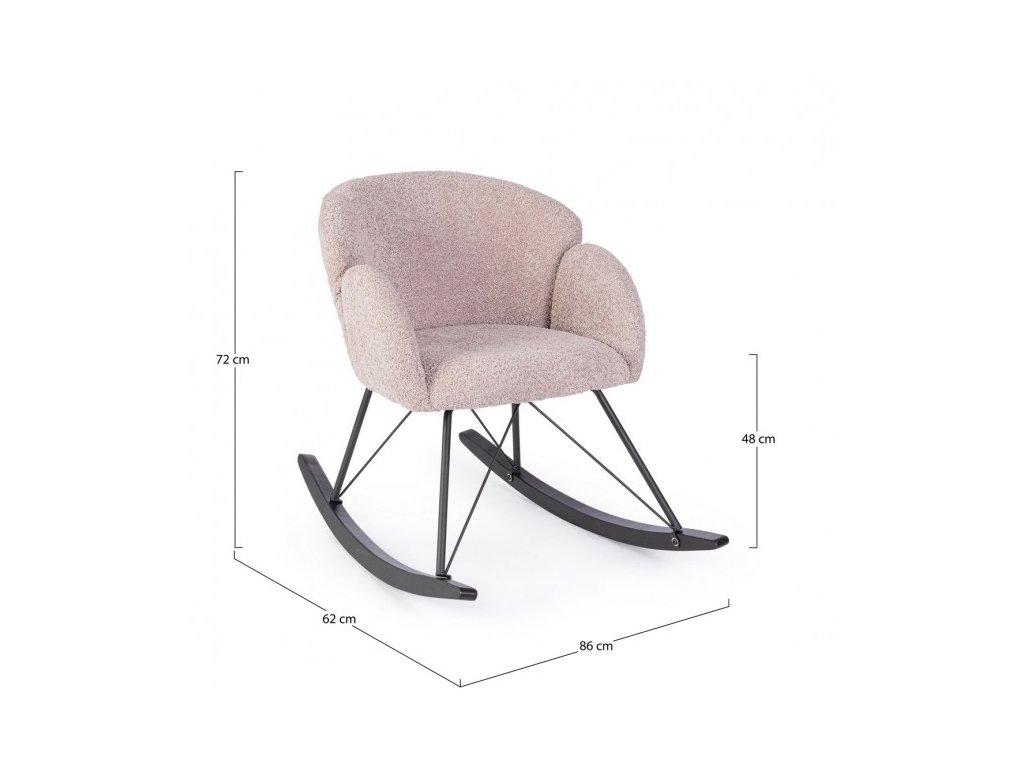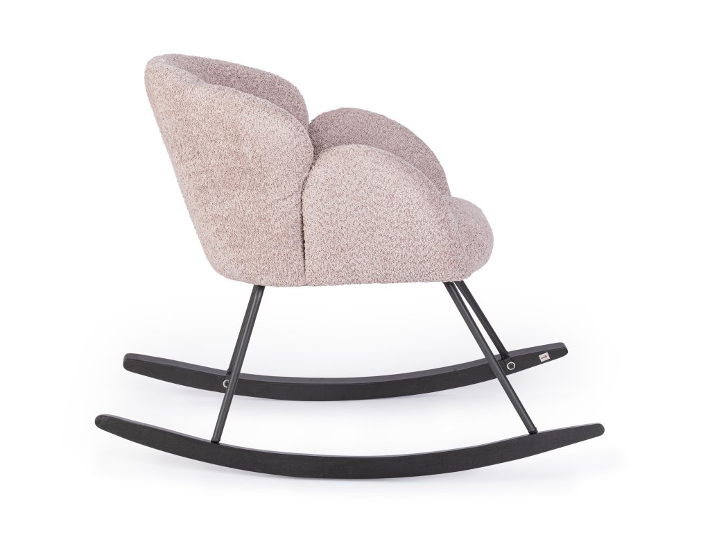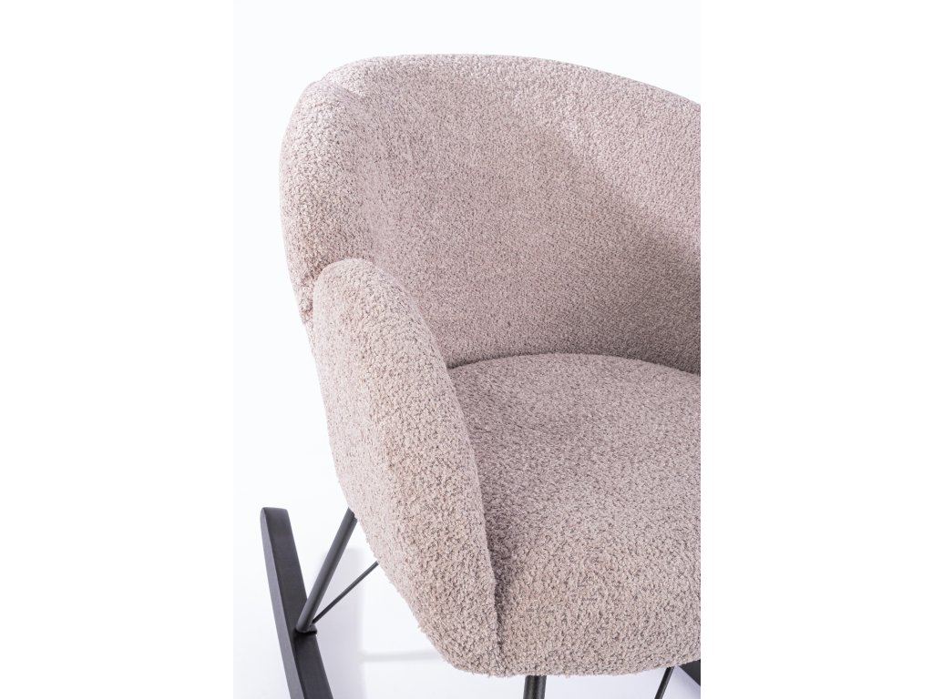 Polyesterové čalounění s efektem bouclé dodává křeslu nádech luxusu a měkkosti, zatímco kvalitní výplň z polyuretanové pěny nabízí bezkonkurenční komfort. Hustota pěny je 25 kg/m3 pro sedadlo, což zajišťuje optimální oporu, a 18 kg/m3 pro opěradlo, což nabízí ergonomickou podporu během dlouhých relaxačních sezení.