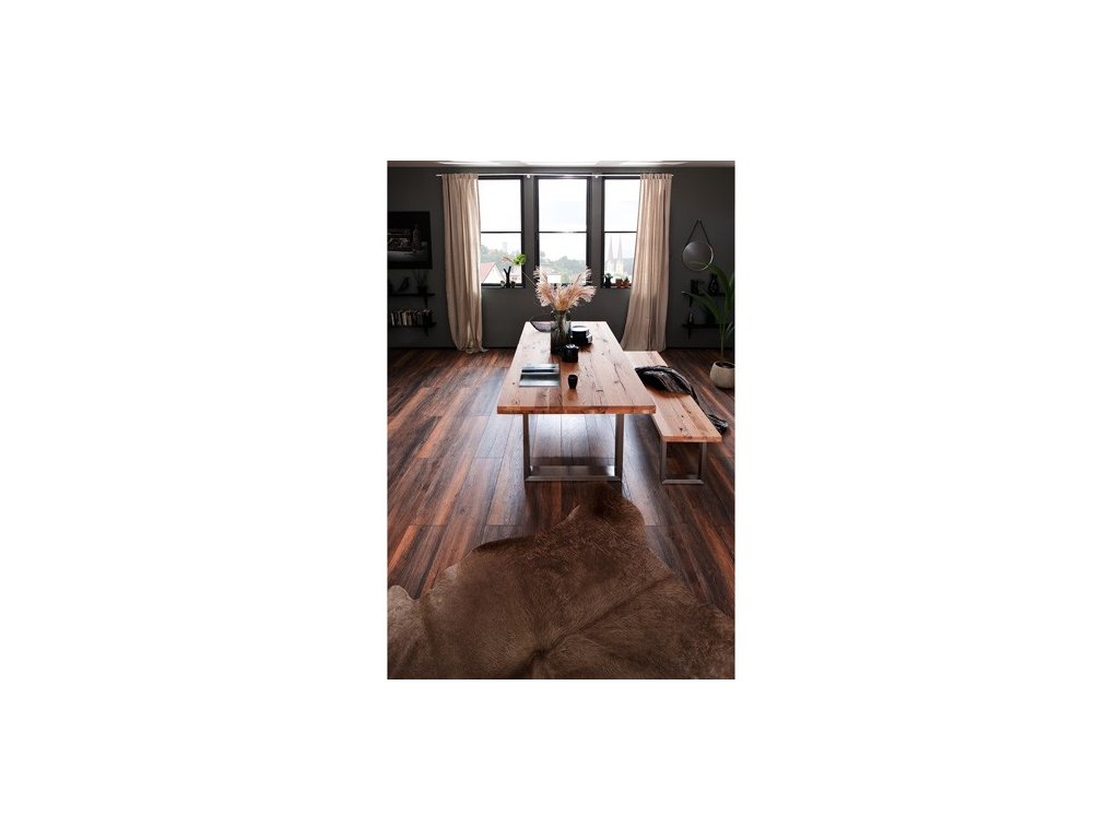 Jídelní lavice Castello je jako stvořená pro stoly ze stejné série. Tato série je dokonale pevná a jedinečná. Ani jeden kus nevypadá navlas stejně. Každá jedna deska je totiž originál. Trhliny, barevnost a samotný vzor dřeva dělají z této série UNIKÁT. Deska lavice je hrubá 4 cm a je z divokého dubu. Na výběr jsou čtyři velikosti. Podnože ve tvaru U jsou z nerezové oceli.K dispozici jsou i další provedení masivu, které lze objednat, a to: dub bassano, dub bělený a dub zvětralý. V případě zájmu, prosím, uveďte do poznámky. 1 ks = 1 balík = 19 - 23 kg