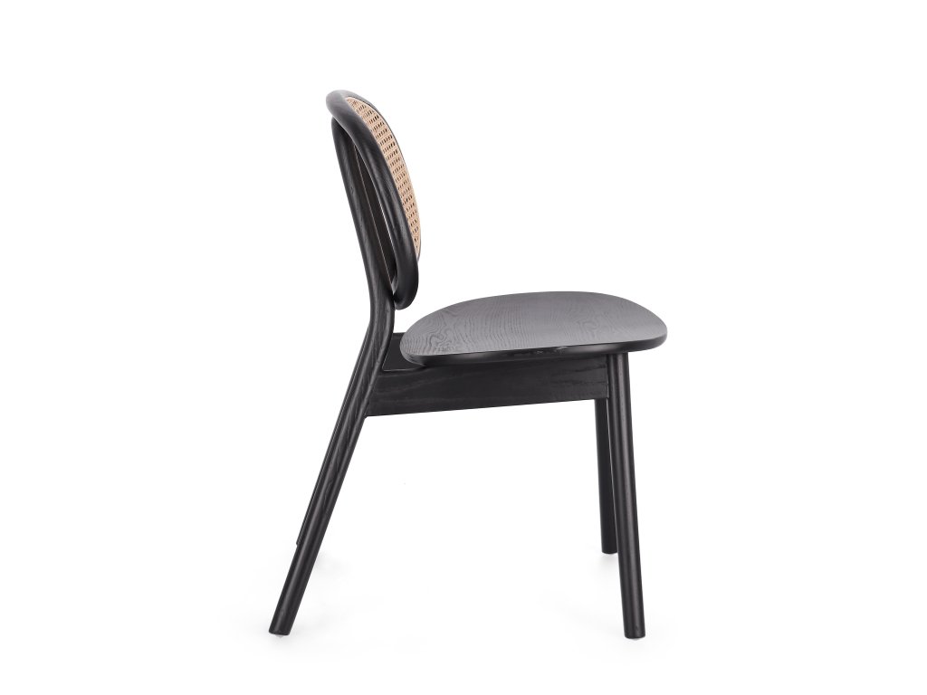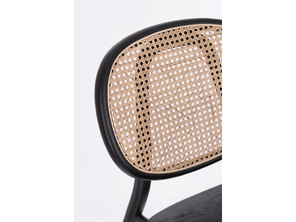 Totalka Adolis v černém provedení ztělesňuje nadčasovou eleganci a řemeslné zpracování. Její rám z jilmového dřeva, vybraný pro jeho pevnost a přirozenou krásu, dává židli pevný a odolný základ. Charakteristické ratanové tkané opěradlo dodává eleganci a ergonomický komfort.