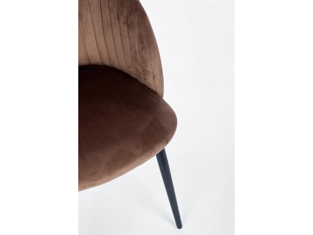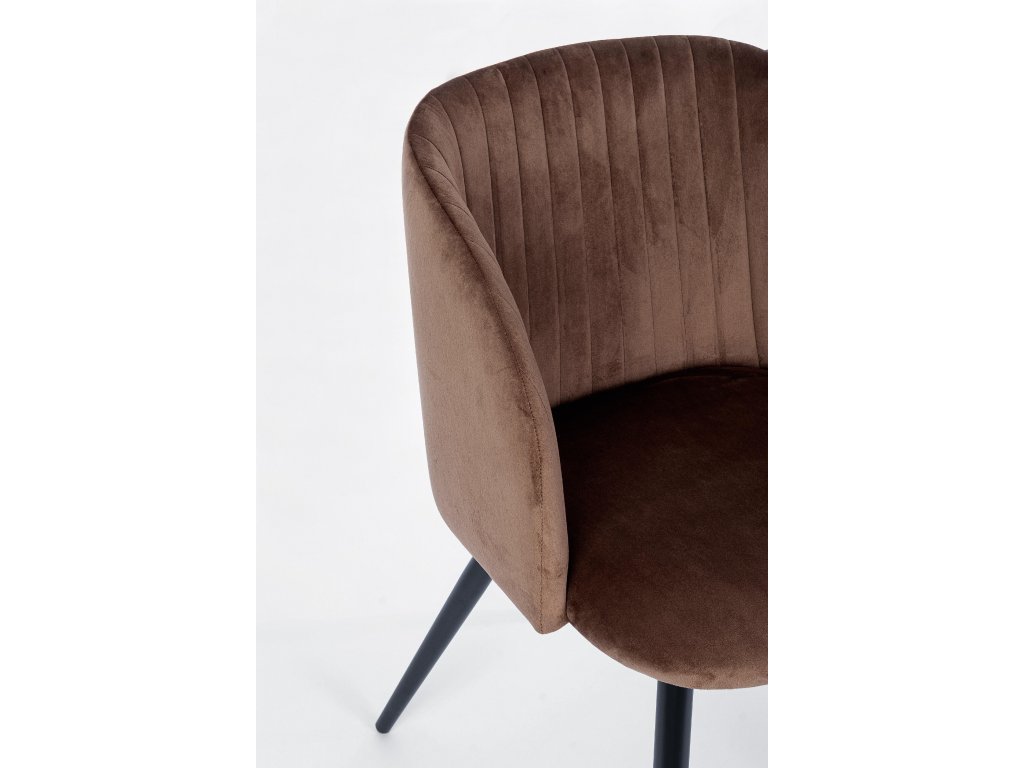 Židle Queen spojuje moderní elegantní design a luxusní vzhled s pohodlným sezením. Překližkový rám poskytuje pevnost a stabilitu, zatímco ocelové nohy s práškovým nástřikem zabezpečují odolnost a dlouhou životnost. Výplň z polyuretanové pěny o hustotě 22 kg/m3 zajišťuje pohodlné a podpůrné sezení, což je ideální pro delší sezení. Potah ze 100% polyesterového sametového materiálu dodává židli elegantní a luxusní vzhled a zároveň je velmi příjemný na dotek.