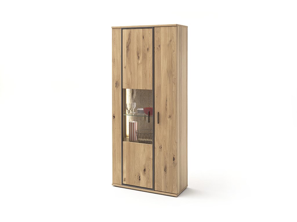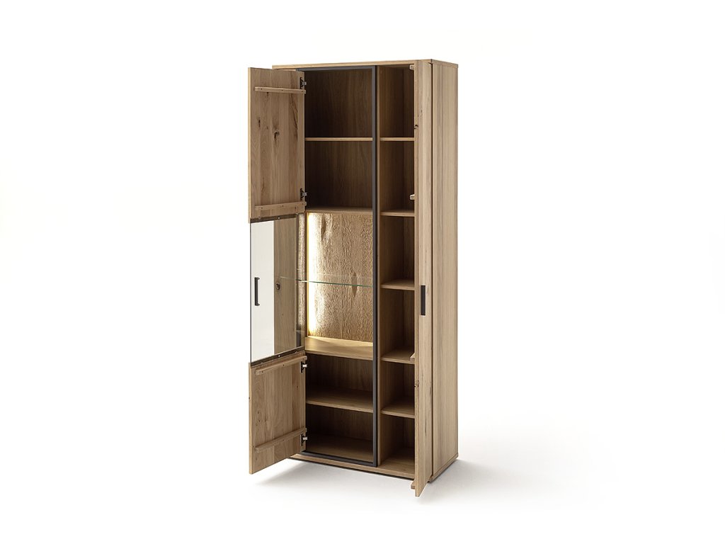 Designová kombinovaná vitrína z dubu bianco a kovovou antracitovou konstrukcí. Vitrína má možnost o doplnění LED osvětlení a nabízí spoustu úložného prostoru. V nabídce se nacházejí i další kousky z této kolekce, stačí do vyhledávání zadat „CAMPINAS“ pro jejich zobrazení. Cena vitríny bez LED osvětlení.