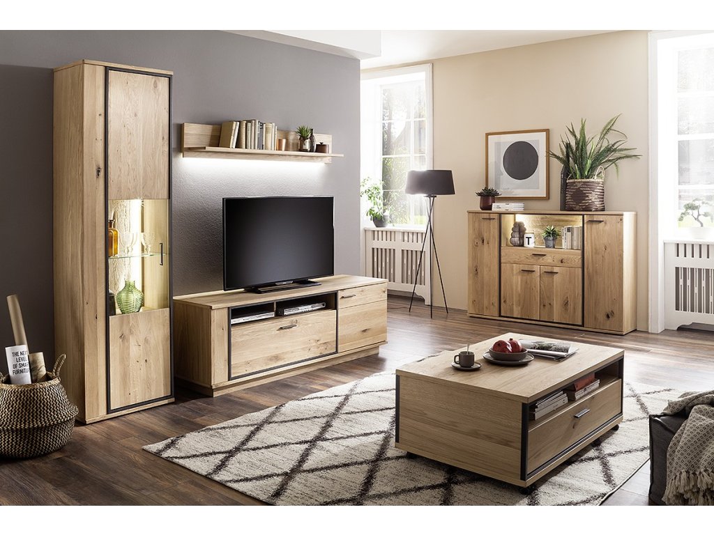 | Materiál: | dub bianco masiv, kov v barvě antracit, LED |