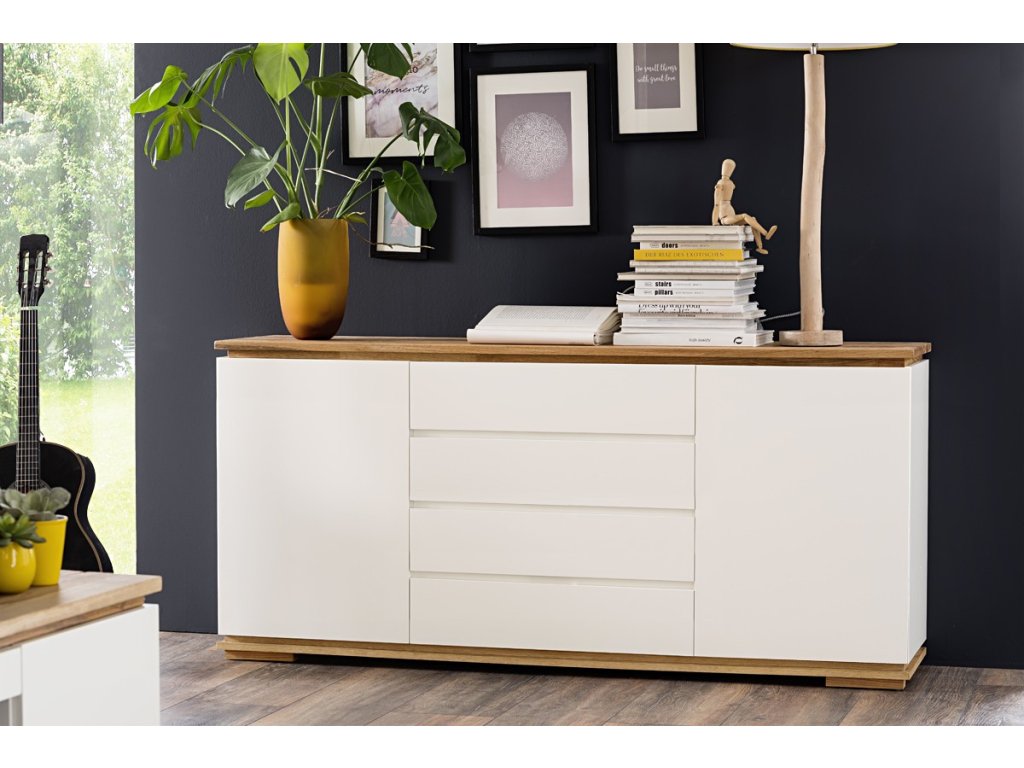 Designový komoda která nabízí úložný prostor v podobě zásuvek a skříněk s dvířky. Komoda je k dispozici v bílém a černém provedení. V nabídce se nacházejí i další kousky z této kolekce, stačí do vyhledávání zadat "CHIARO" pro jejich zobrazení.
