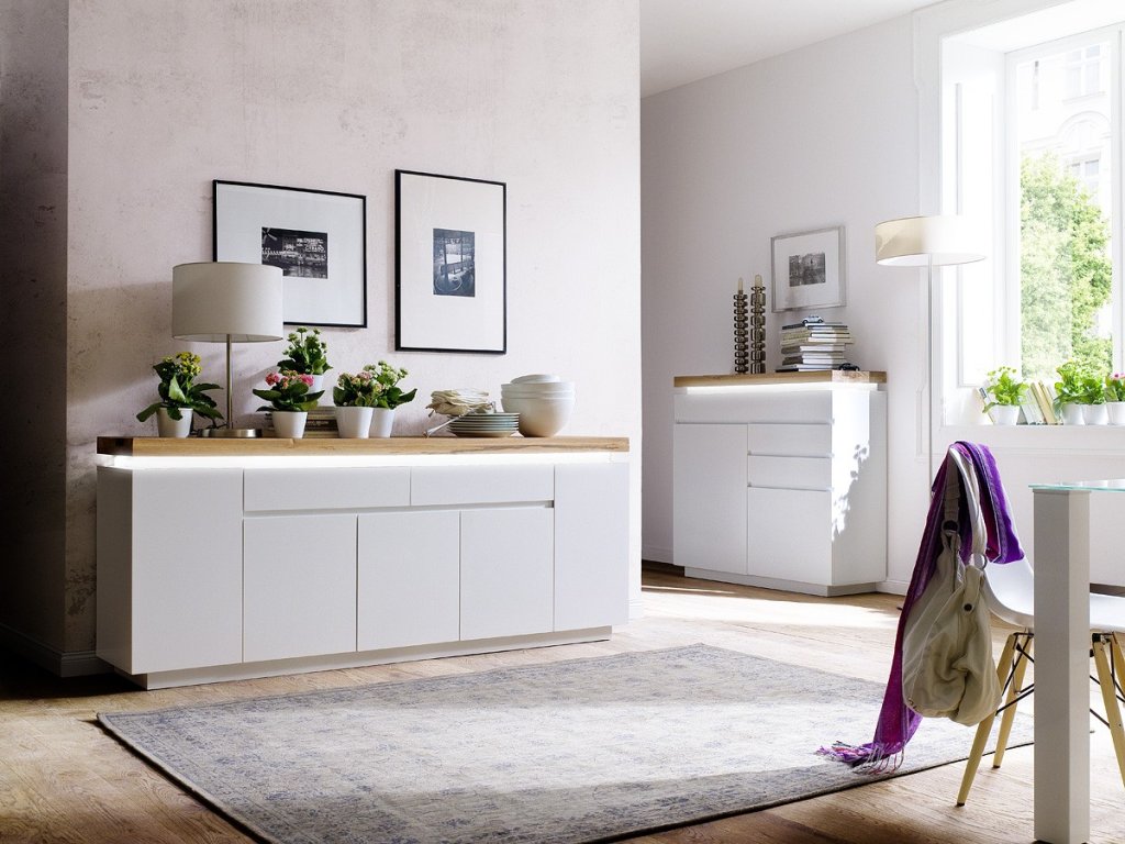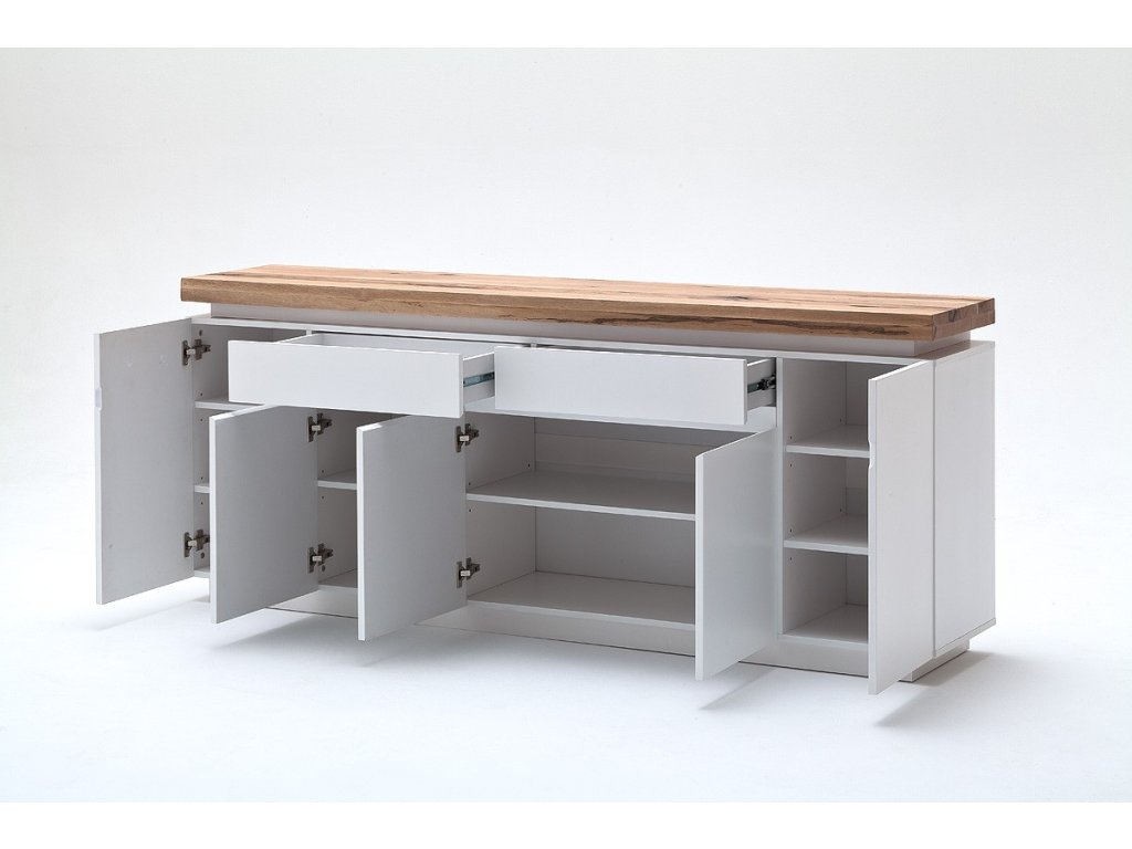 Nadčasová komoda s čistými liniemi jejíž design je doplněn o prvek z dubového masivu. Horní deska z masivu v tloušťce 6cm. V nabídce se nacházejí i další kousky z této kolekce, stačí do vyhledávání zadat "ROMINA" pro jejich zobrazení.