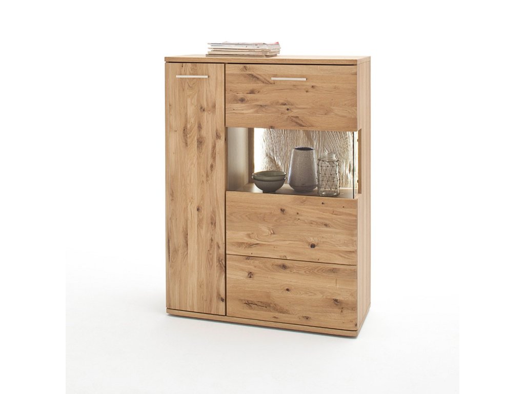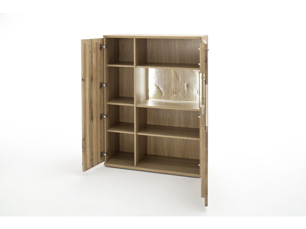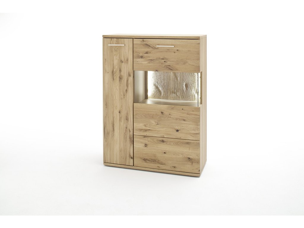 Designová, vysoká komoda z kolekce SANTORI s dostatečným úložným prostorem doplněna ovolitelné LED osvětlení. Komoda je vyhotovena z dubového olejovaného dřeva v kombinaci se sklem. V nabídce se nacházejí i další kousky z této kolekce, stačí do vyhledávání zadat "SANTORI" pro jejich zobrazení.