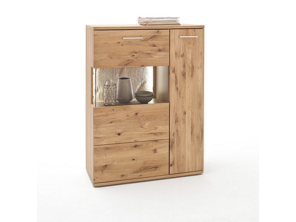 Designová, vysoká komoda z kolekce SANTORI s dostatečným úložným prostorem doplněna ovolitelné LED osvětlení. Komoda je vyhotovena z dubového olejovaného dřeva v kombinaci se sklem. V nabídce se nacházejí i další kousky z této kolekce, stačí do vyhledávání zadat "SANTORI" pro jejich zobrazení.