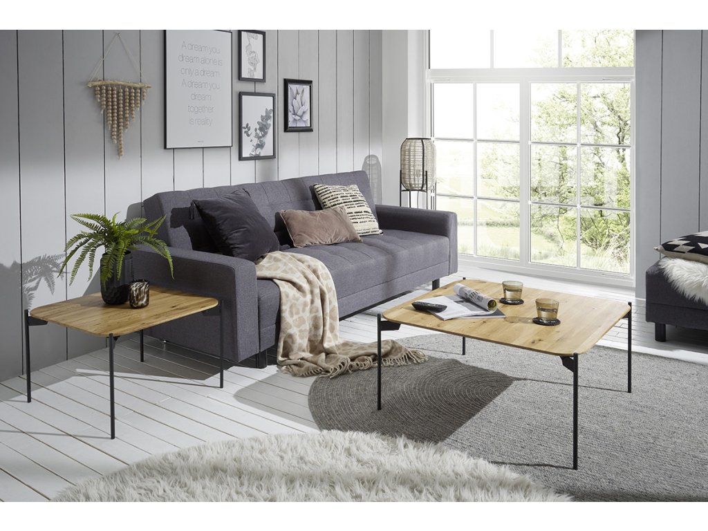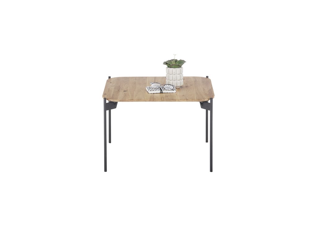 Čtvercový konferenční stolek na tenkých kovových nohách lakovaných matným černým lakem. Deska se tak doslova vznáší nad zemí. I přes nenápadnou konstrukci se stolek Alto určitě neztratí v žádné místnosti. Deska stolu z olejovaného dubového masivu vysoké jakosti s průběžnými lamelami totiž na sebe poutá náležitou pozornost.