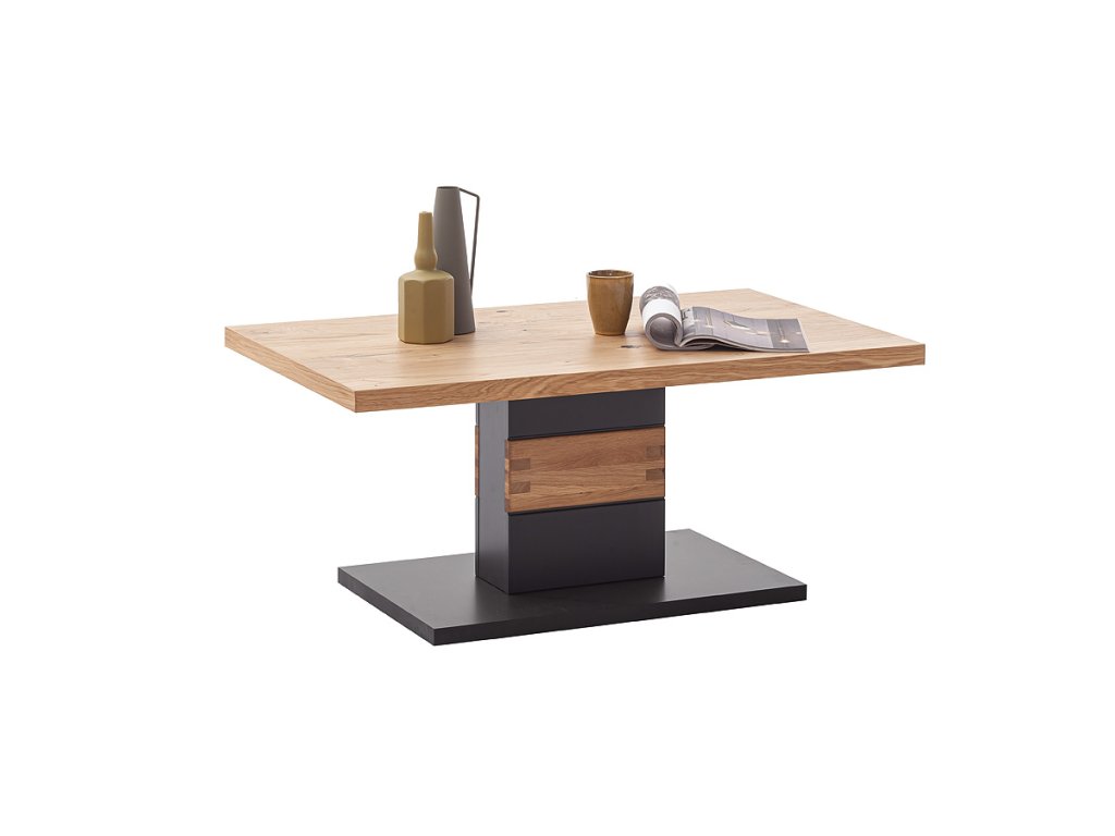 Konferenční stolek Cesena je skvělým nábytkem hlavně do moderních obývacích prostor. Černosivé provedení MDF desek a desky z dubové dýhy s dřevěnými lištami na hranách poutá náležitou pozornost. Díky celkové pevnosti má tento kompaktní stolek nosnost až 40 kilogramů.