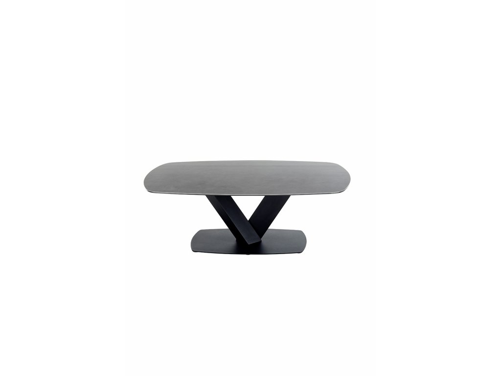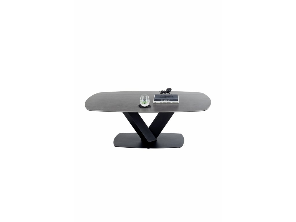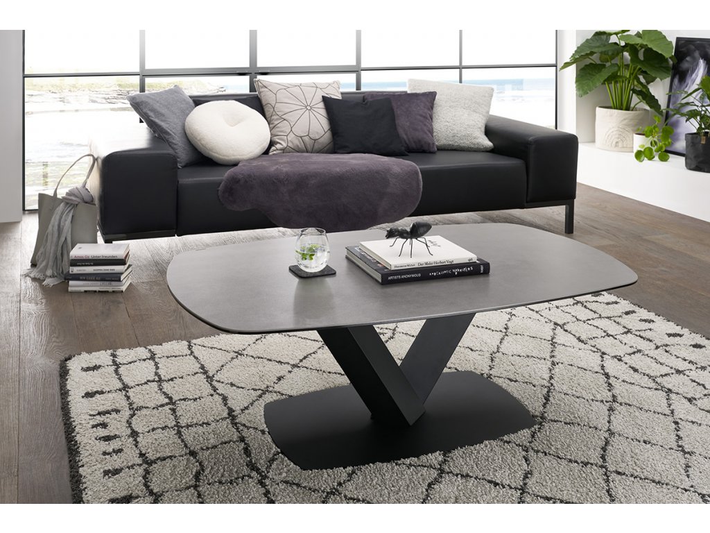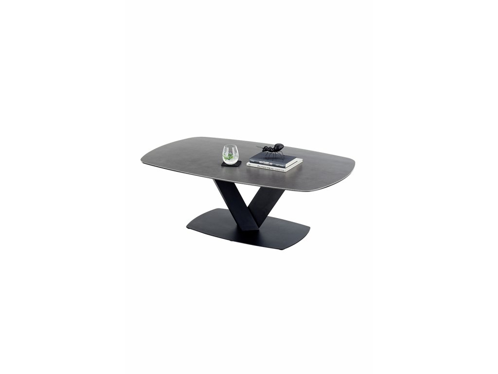 Konferenční stolek Malango je designovým skvostem s vysokými ambicemi. Zaručeně dodá vašemu obývacímu pokoji šmrnc. Využívá osvědčenou kombinaci materiálů moderního nábytku, kterou představuje kov, sklo a keramika. Ladná deska stolu se zaoblenými tvary je z pevného skla a vrstvy keramiky v barvě antracit. Podnož je ve tvaru masivního písmene V a na její pevnost se dá spolehnout. V černé matné barvě. Podstavec je kovový pokryt černou práškovou barvou.