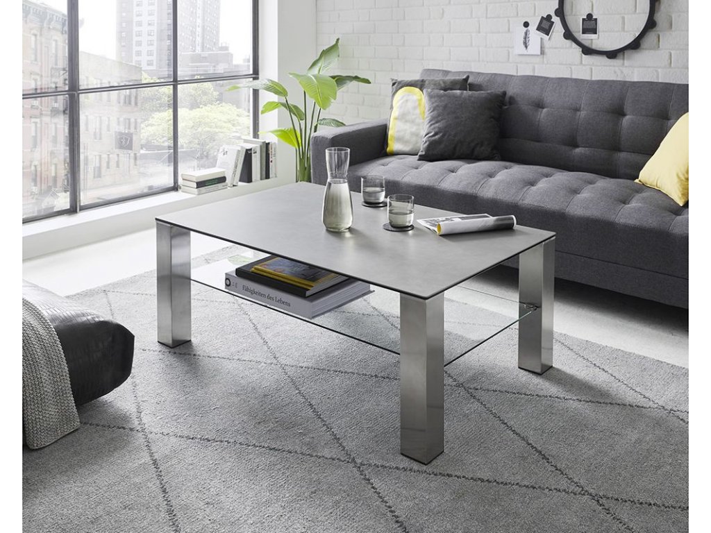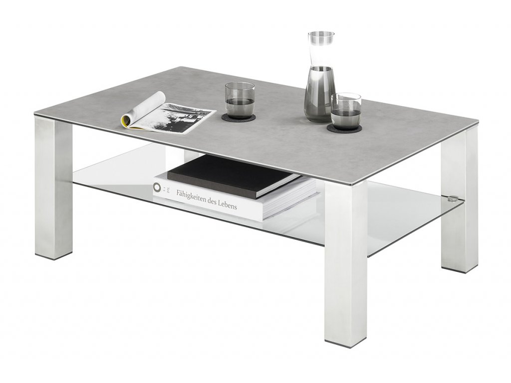 Puno je konferenční stolek, který je jedinečným produktem v naší nabídce. Je esteticky velice příjemný na pohled a spojuje v sobě moderní styl provedení, který je postaven na trojici materiálů, skla, keramiky a kovu. Důležité je jejich vzájemné propojení, které dotváří výsledný celek. V tomto případě se to podařilo na jedničku s hvězdičkou. Kovové broušené nohy čtvercového průřezu jsou z broušené nerezavějící oceli. Středová polička z průhledného skla je navzájem propojuje a zpevňuje. Samotná deska stolu je kromě skla doplněna o keramickou vrstvu šedé barvy.
