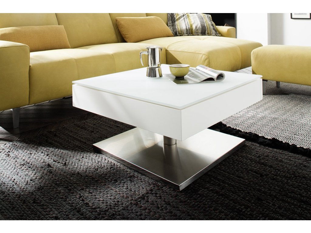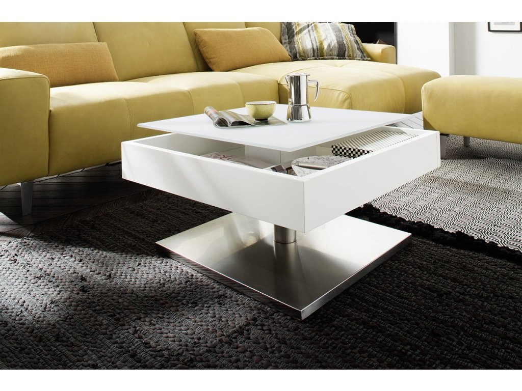 Praktický stylový konferenční čtvercový stolek s vrchní otočnou deskou a úložným prostorem. Vrchní otočná deska sestává s 10 mm matného bezpečnostního skla. Spodní část stolku je z oceli. Max. nosnost 20 kg.