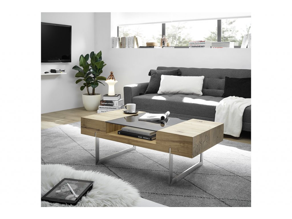 Konferenční stůl Rewa patří mezi luxusní konferenční stoly. Designově dokonale zvládnutý stůl se zaručeně stane centrem vašeho obývacího pokoje nebo jiných moderních prostor. Kvalitní materiály jako olejovaná dubová dýha, sklo, kovová podnož s optikou broušené nerezavějící oceli jsou pastvou pro oči. Všechno do sebe zapadá. Deska stolu je kombinací masivního dřeva a skla. Pod skleněnou částí se nachází prostor pro odložení menších předmětů.