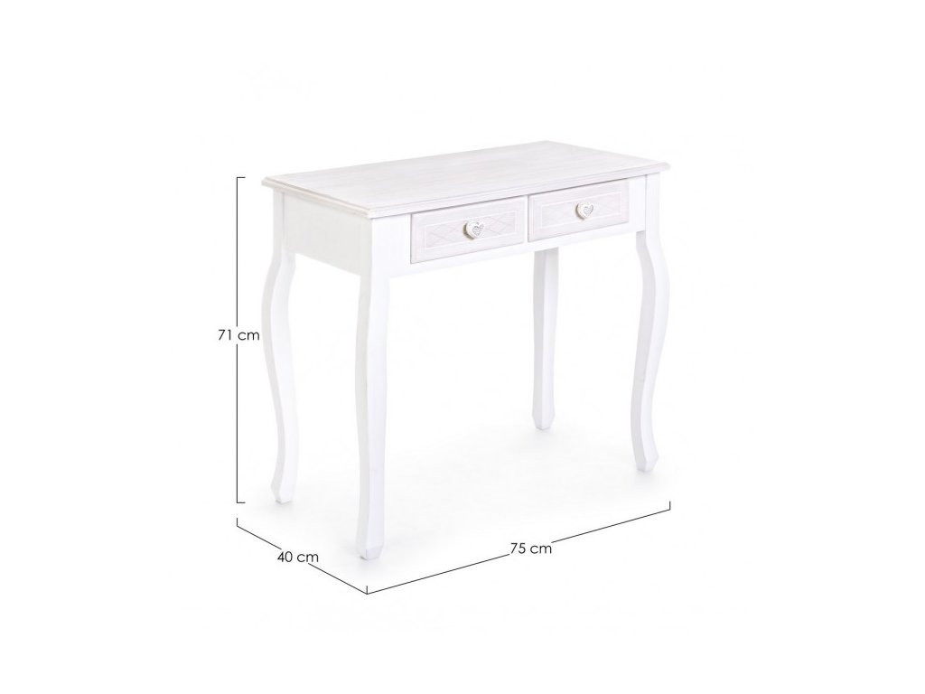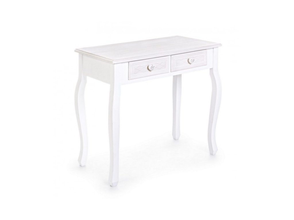 Tato jemná konzola Charlene je vyrobena z kvalitního MDF, což zaručuje stabilitu a pevnost. Povrchová úprava matnou barvou na vodní bázi zajišťuje nejen estetický dojem, ale také trvanlivost a bezpečnost pro vaše domácí prostředí. Rukojeti z polyresinu - pryskyřičného materiálu - ve tvaru srdíček dodávají konzole jemnost a romantický nádech. Dostupná i ve větší verzi.