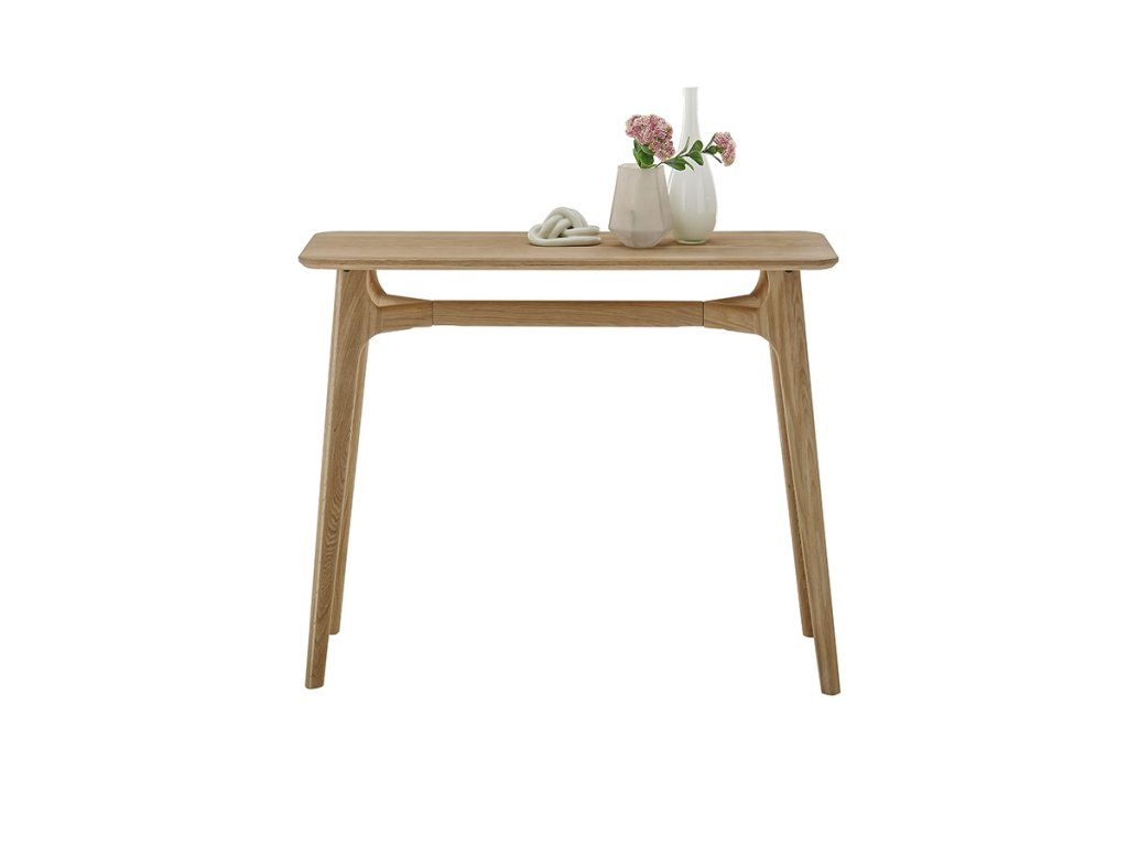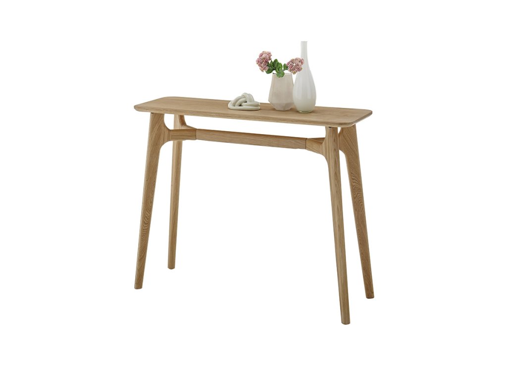 Nechte se okouzlit konzolovým stolkem Mileto. Jeho štíhlý a jemný design vás může lhát, ale nenechte se zmást. Vyroben je z nejkvalitnějšího olejovaného dubového masivu. Mileto nabízí nejen stabilitu na dlouhá léta, ale také půvab a eleganci.