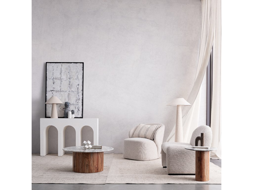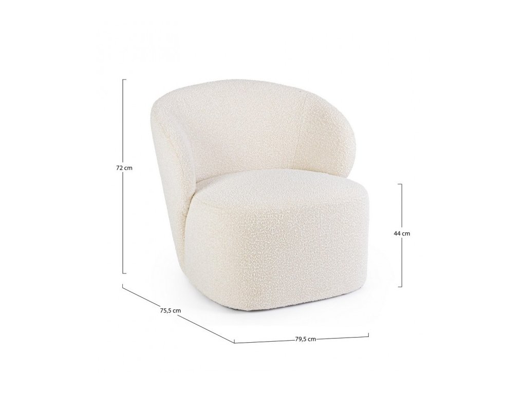 Křeslo Babila v přírodní bílé barvě upoutá pozornost spojením organického designu a současného pohodlí. Jeho ručně vyrobená struktura vyrobená z borovicového dřeva a překližky poskytuje pevnost a trvanlivost, aniž by byla ohrožena vizuální lehkost. Toto křeslo je čalouněno luxusní polyesterovou tkaninou s efektem bouclé a ztělesňuje rustikální eleganci a nabízí příjemný hřejivý pocit. Zážitek ze sezení je ohromující díky hustotě výplně z polyuretanové pěny, kalibrované na 20/24 kg/m³. Křeslo Babila se tak stává místem pro dlouhou relaxaci. Látka bouclé je odolná vůči opotřebení a proto má dlouhou životnost. . Snadno se čistí. Univerzální barevné provedení, které se lehce přizpůsobí je také velké plus. Nábytek v provedení boucle dodává pocit pohodlí a útulnosti.