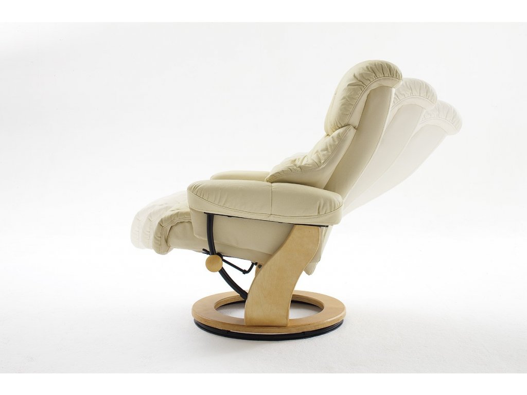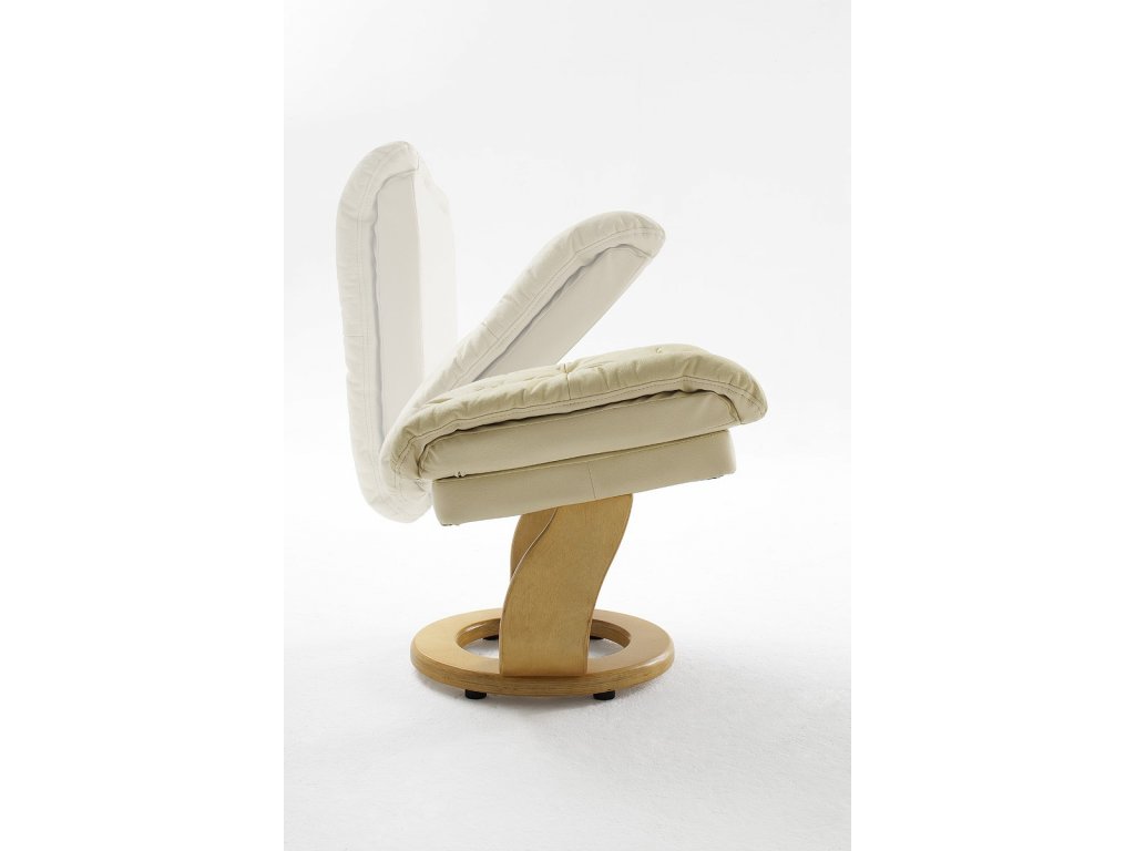 Kvalitní relaxační křeslo s podnoží, která má praktický úložný prostor se ideálně hodí do moderních i stylových interiérů. Polohovatelné, velmi pohodlné otočné křeslo disponuje nastavitelným opěradlem / tělesný tlak 135 ° / a čalouněnými područkami. Moderní design, prvotřídní provedení a pohodlné sezení. Na výběr ze tří barevných provedení podnoží: natur, ořech nebo černá.