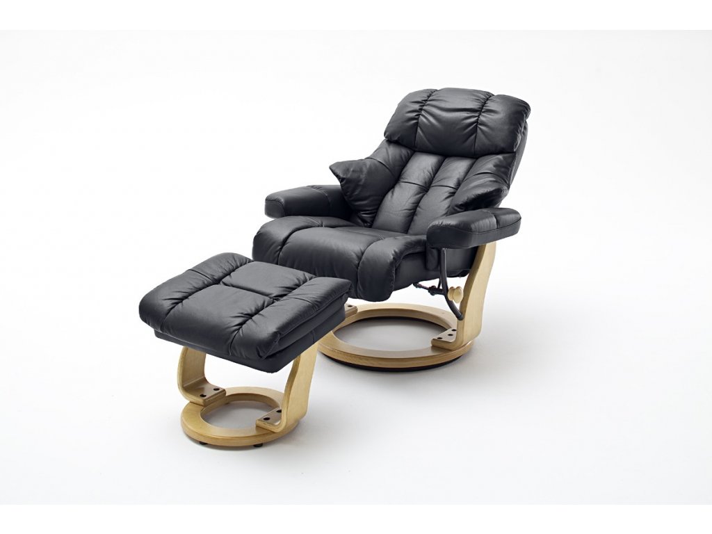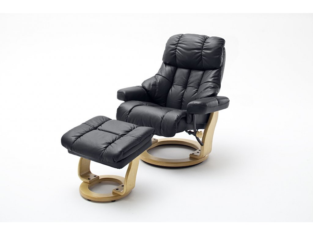 Exkluzivní kožené křeslo s praktickou podnožkou, která disponuje úložným prostorem, se vyznačuje kvalitním a velice pohodlným sezením. Relaxační křeslo je polohovatelné a samozřejmě otočné. Má čalúnenené loketní opěrky a nastavitelné opěradlo tělesným tlakem / 135 ° /. Křeslo představuje zároveň i luxusní doplněk do obývacího pokoje či pracovny. Stačí si už jen vybrat provedení podstavy.