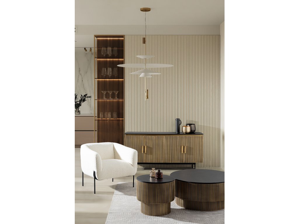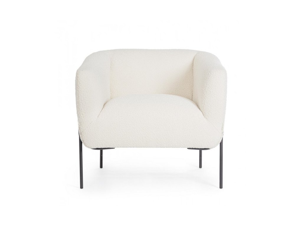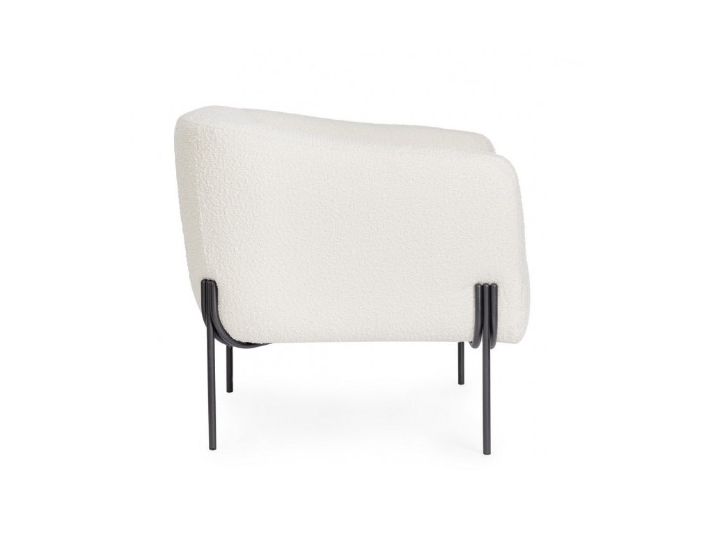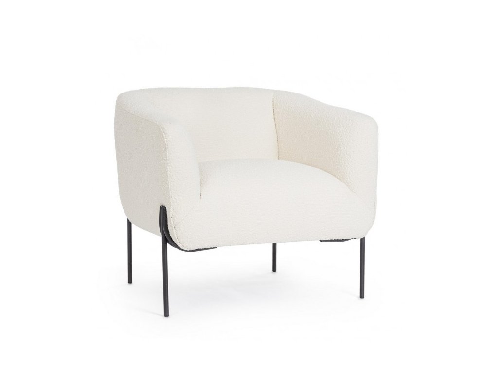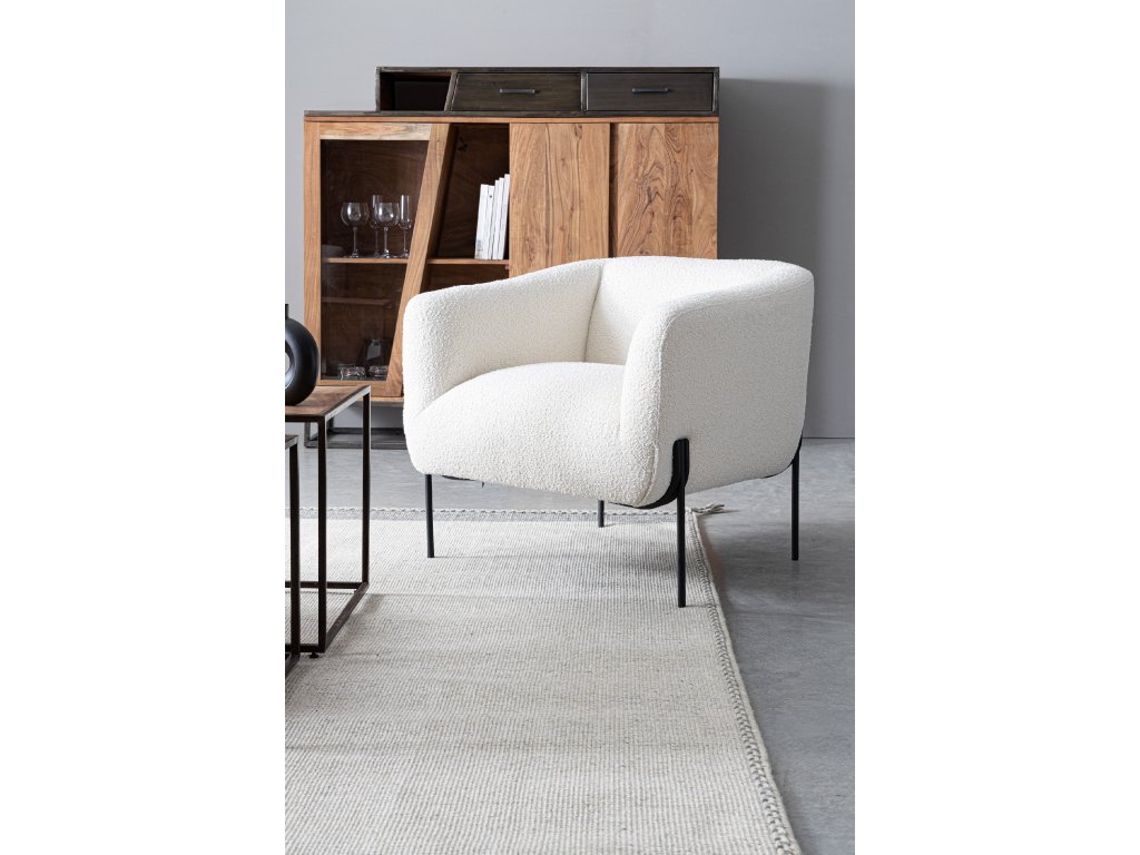 Pohodlné křeslo v krémové barvě v bouclé provedení přinese do vašeho interiéru nejen pohodlí, ale také styl. Kombinace látky bouclé s vlněným efektem a tenkými ocelovými nohamivytváří kontrast mezi měkkým, teplým vzhledem látky a chladným, elegantním vzhledem oceli. Tento kontrast dodává křeslu jedinečný charakter a přispívá k jeho atraktivnosti a unikátnosti.