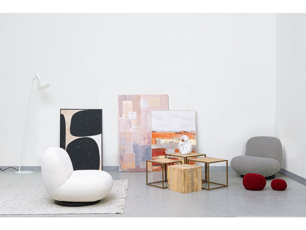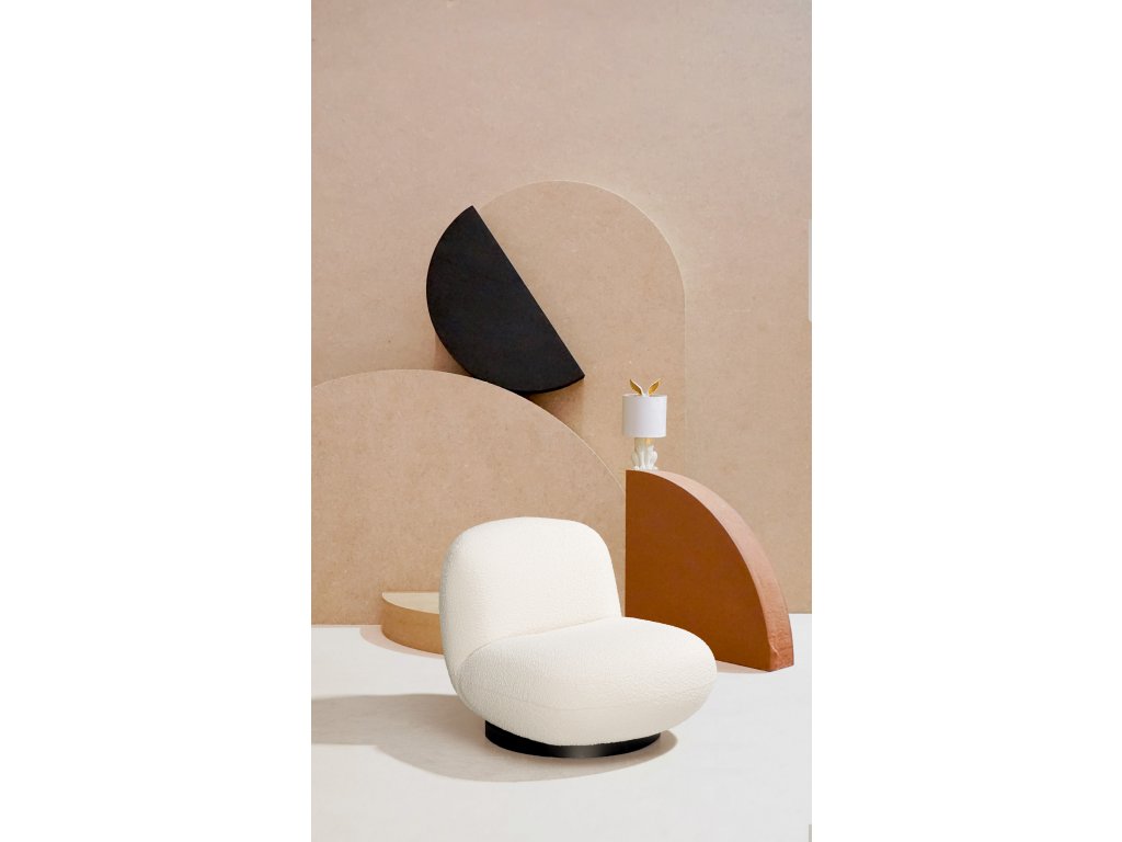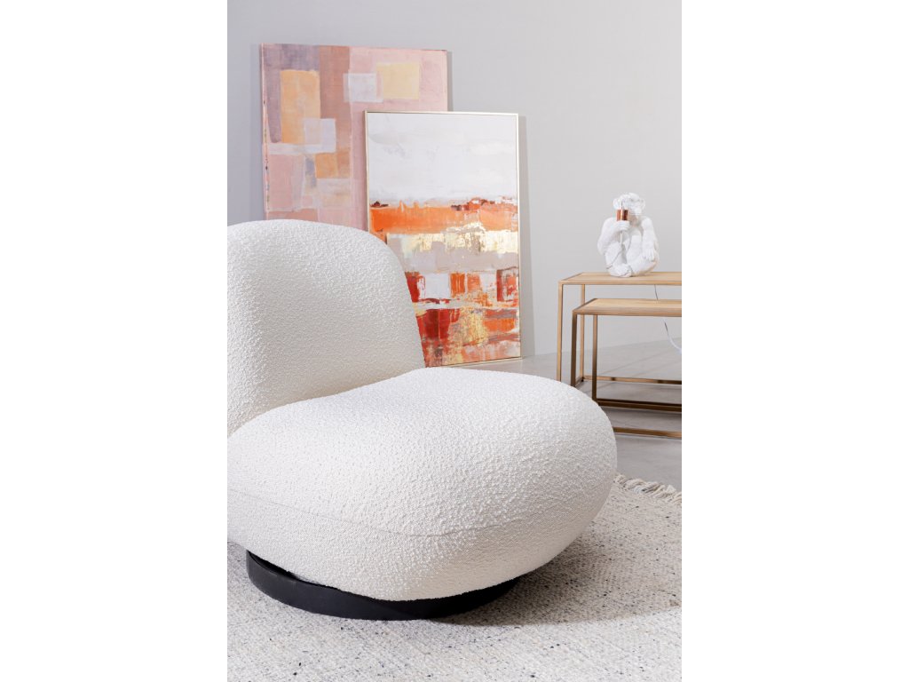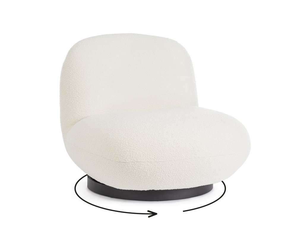 Moderní otočné pohodlné křeslo v bouclé provedení přinese do vašeho interiéru nejen pohodlí, ale také styl.  ;Ocelová rotační základna dodává křeslu stabilitu a flexibilitu, což umožňuje snadné otáčení a pohyb.