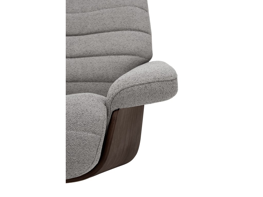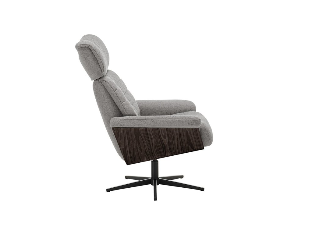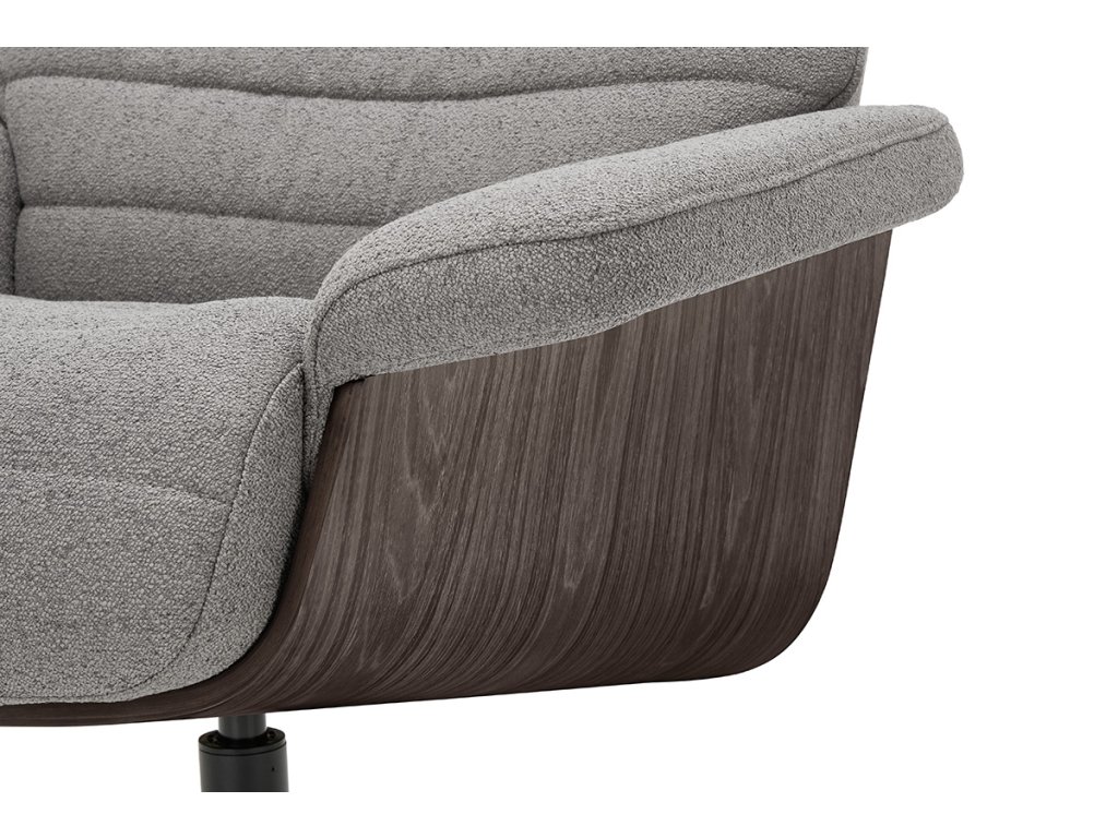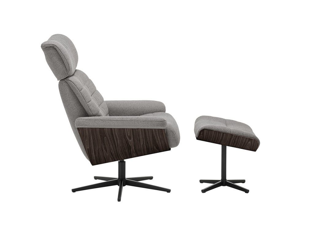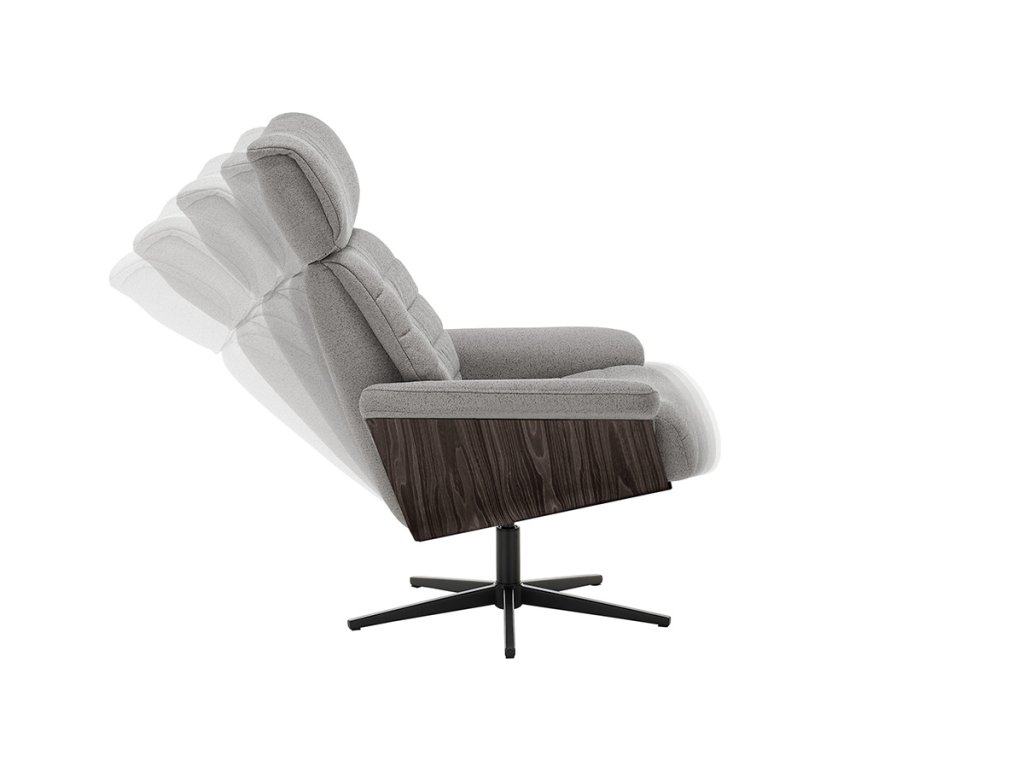 Relaxační křeslo Ulla s funkcí otáčení o 360 stupňů se vyznačuje extrémním pohodlím. Na co se můžete těšit jsou područky, o které se můžete pohodlně opřít. Opěrka hlavy je nastavitelná ve čtyřech polohách. Sklon sedáku lze také velmi snadno přizpůsobit pro maximální komfort. Pevná černá kovová podnož ve tvaru pěticípé hvězdy je mimořádně trvanlivá. Retro vzhled židle ji předurčuje hlavně do prostor s retro zařízením, ale poslouží také v moderních prostorách. Netypickým designovým prvkem je dřevěná tvarovaná nosná část sedáku, která poskytuje pevnou podporu celé bohatě polstrované sedací části dokonale kopírující tvar těla.