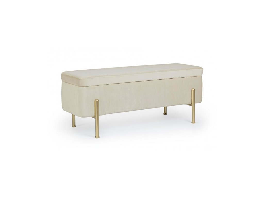 Elegantní 2-místná lavice Irina s bohatým úložným prostorem v přírodním provedení bude dokonalým doplňkem vašeho interiéru. Pevná konstrukce vyrobená z vysoce kvalitního MDF a překližky nabízí spolehlivou odolnost pro každodenní použití. Zlaté ocelové nohy dodávají lavici nádech luxusu a elegance, a zároveň zaručují stabilitu.