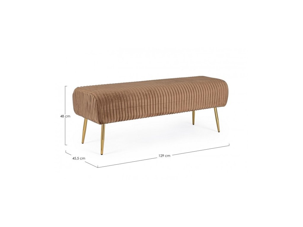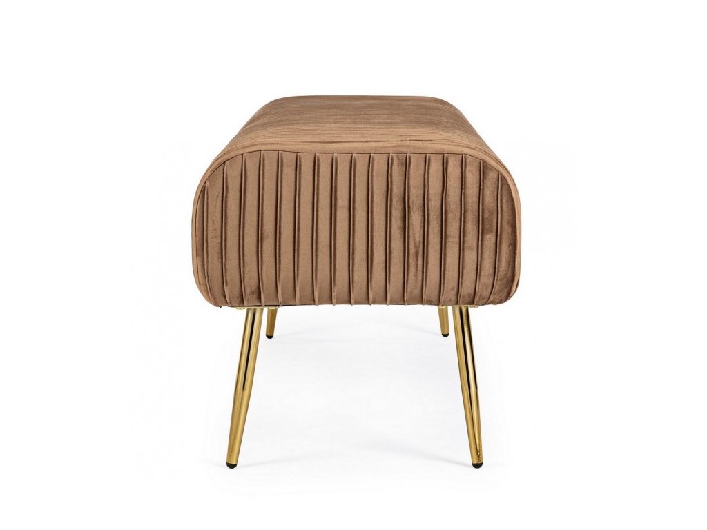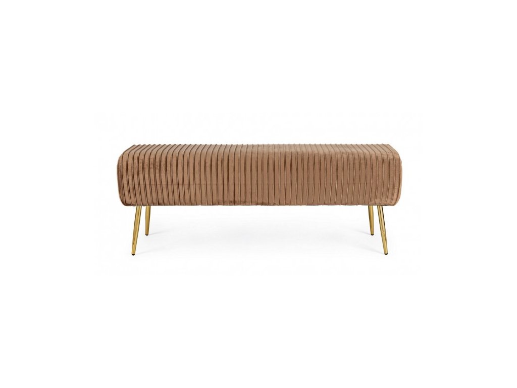Elegantní 2-místná lavice Selena v krásné bronzové barvě bude ve vašem interiéru luxusním doplňkem, který spojuje styl a funkčnost. Díky pevné MDF a překližkové konstrukci je tato lavice navržena tak, aby odolala každodennímu opotřebení a zároveň nabízela nádech luxusu. zlaté barvě dodávají designu nádech rafinovanosti a stability, zatímco polyesterové čalounění s manšestrovým efektem dodává přívětivý a sofistikovaný vzhled. Husté polstrování o hustotě 30 kg/m3 zajišťuje pohodlí při dlouhodobém používání.