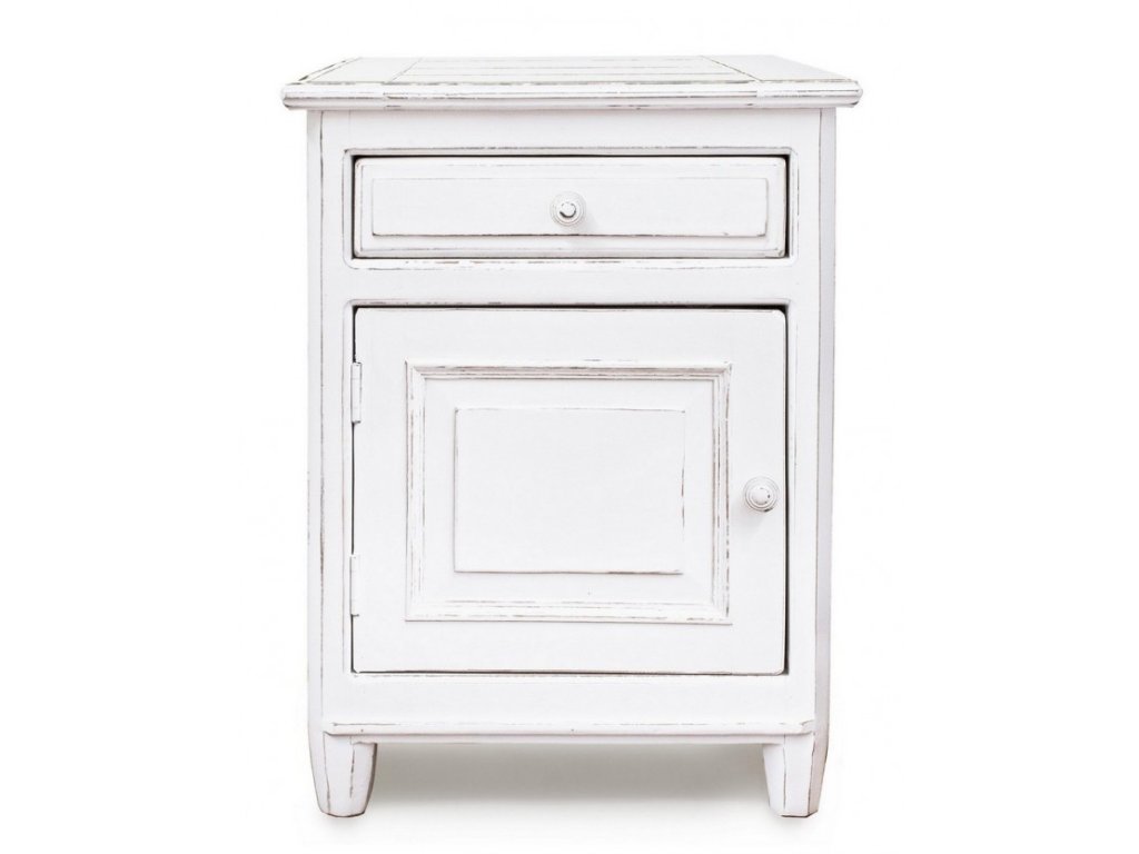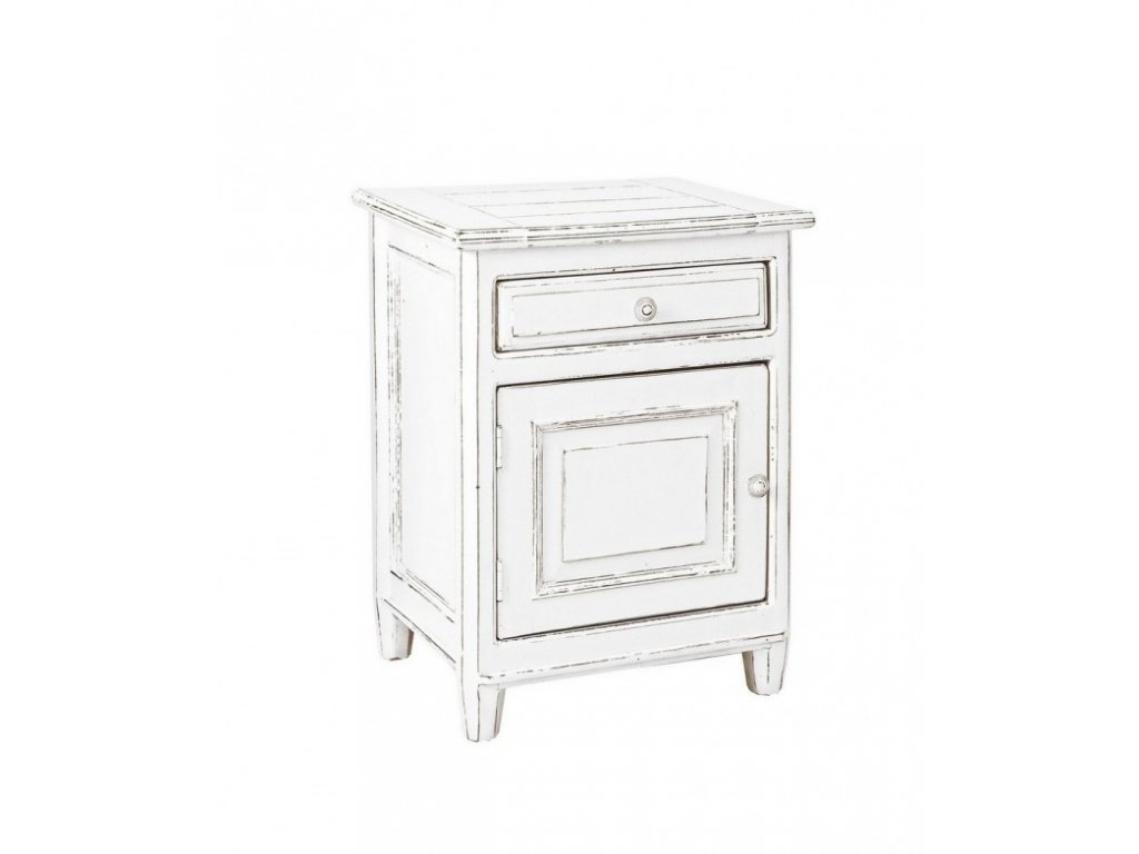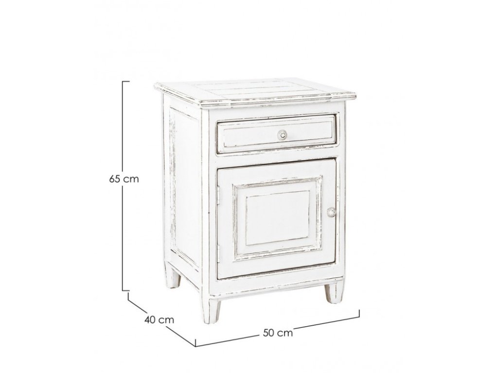 Noční stolek ve vintage stylu funkční a zároveň stylový prvek, který přinese do vašeho interiéru speciální atmosféru nostalgie a pohodlí. Je vybaven jedním šuplíkem a úložným prostorem s dvířky.