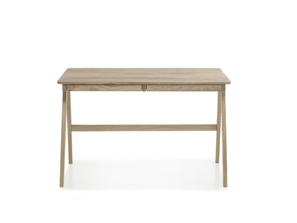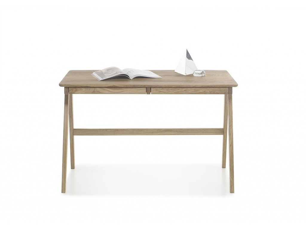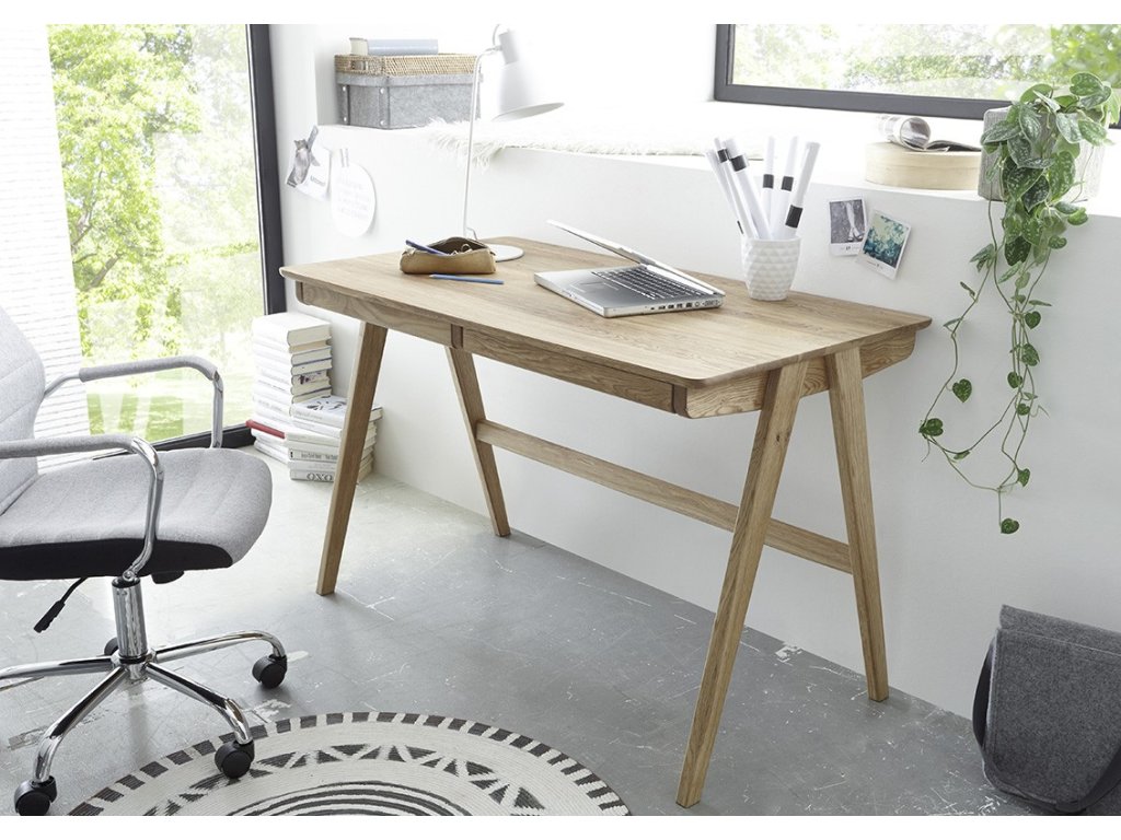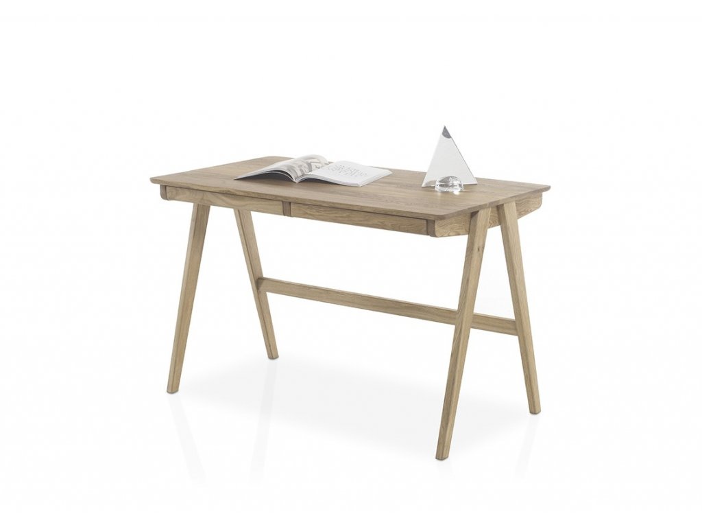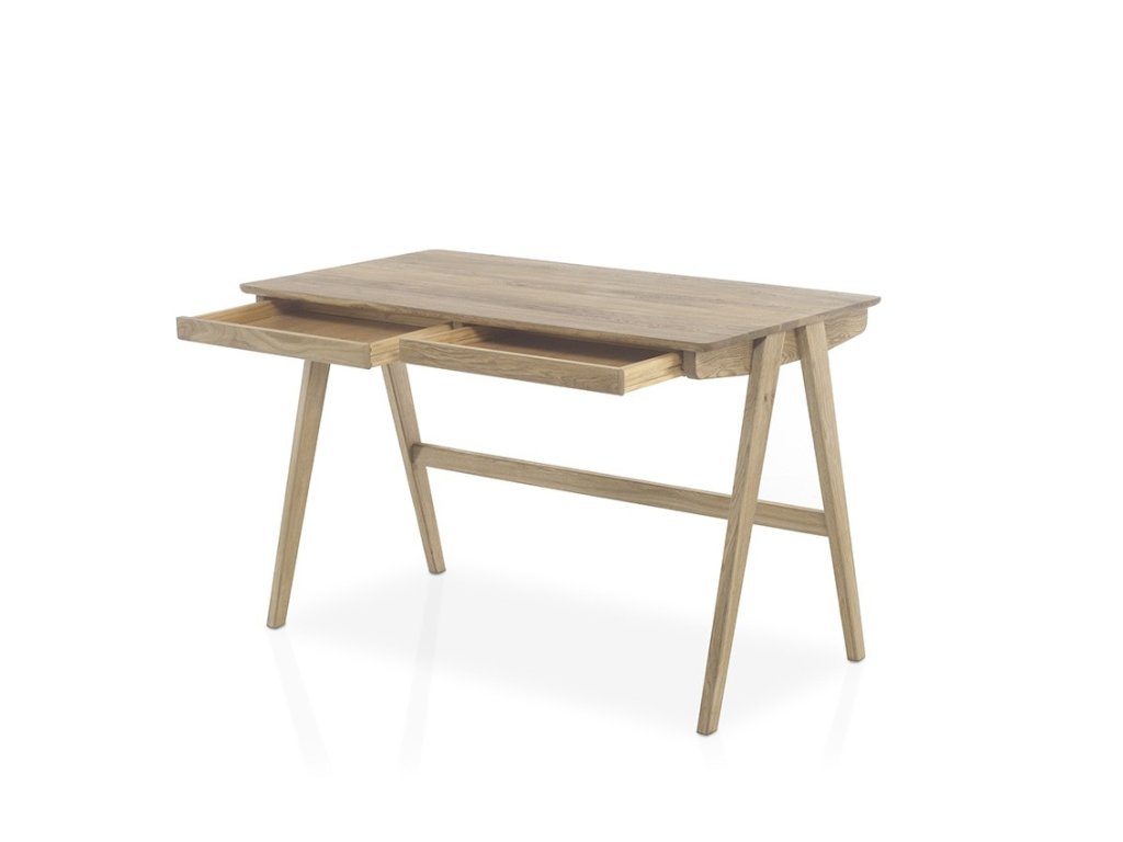 Moderní masivní pracovní stolek s dvěma zásuvkami má elegantní design a kvalitní provedení. Stolek se hodí do moderních i stylových interiérů.
