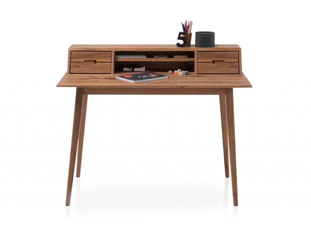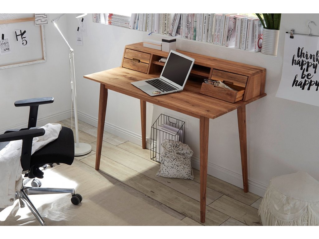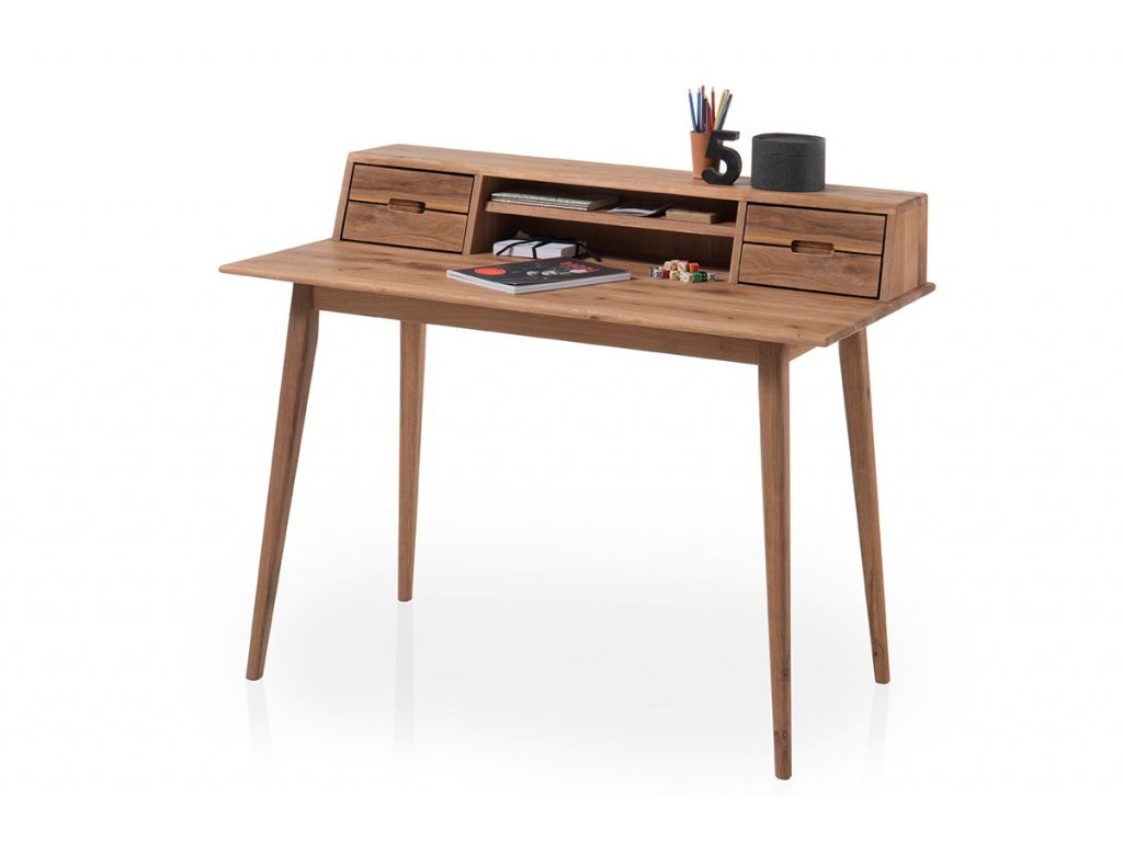 Elegantní masivní pracovní stolek představuje krásný doplněk do stylových i moderních interiérů. Stolek má čtyři zásuvky po bocích a dvě otevřené přihrádky uprostřed. Krásně propracovaný kousek masivu do vašeho interiéru.