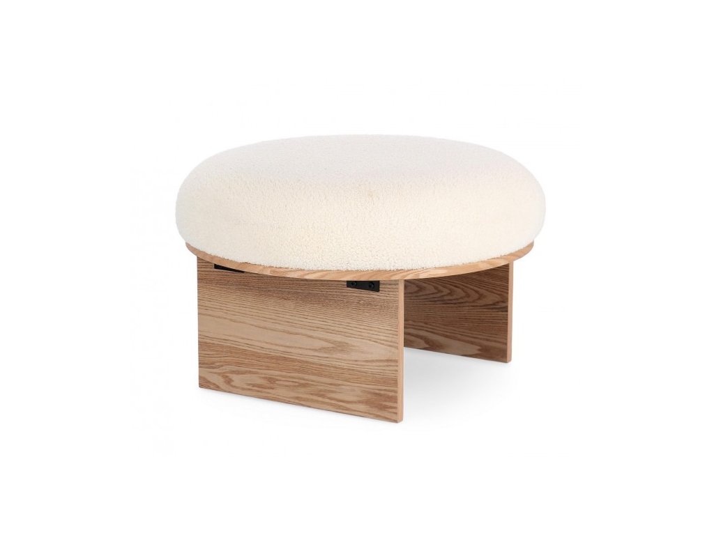 Krásný pohodlný puf/židle vyrobený z MDF a jasanové dýhy s bouclé s vlněným efektem přinese do vašeho interiéru nejen pohodlí, ale také styl. Kombinace látky bouclé a dřeva dodává pufu jemný a útulný vzhled.