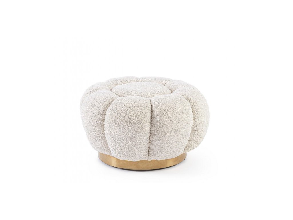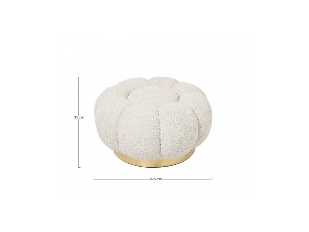 Puf Florel je mistrovské dílo, které dokonale spojuje design a funkčnost. Polyesterový potah s efektem bouclé dodává pufu elegantní a sofistikovaný vzhled, jakož i příjemný pocit na dotek. při sezení nebo opírání. Můžete jej použít jako další sedátko, podnožku nebo dokonce jako konferenční stolek, díky čemuž se tento puf stane všestranným prvkem vašeho domova. oceli zlaté barvy, který celému kousku dodává punc luxusu a stylu. Díky své pevné konstrukci, vysoce kvalitnímu čalounění a zlatým ocelovým detailům je tento puf ideální volbou pro ty , kteří hledají kvalitu a styl.