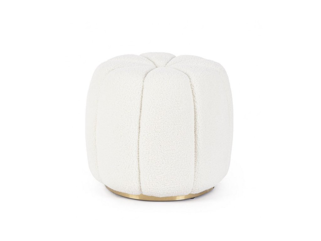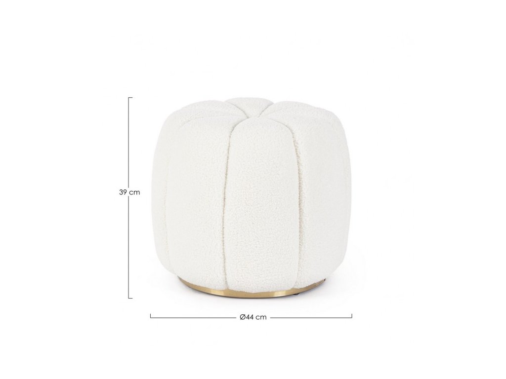 Výrazným prvkem tohoto pufu je spodní ozdobný prsten z lakované oceli ve zlaté barvě. Tento vynikající detail nejen dodává pufu nádech luxusu, ale také zdůrazňuje jeho krásu a styl. Lakovaná ocel se zlatým povrchem vytváří elegantní kontrast s bílou barvou pufu, díky čemuž je středem každého prostředí.
