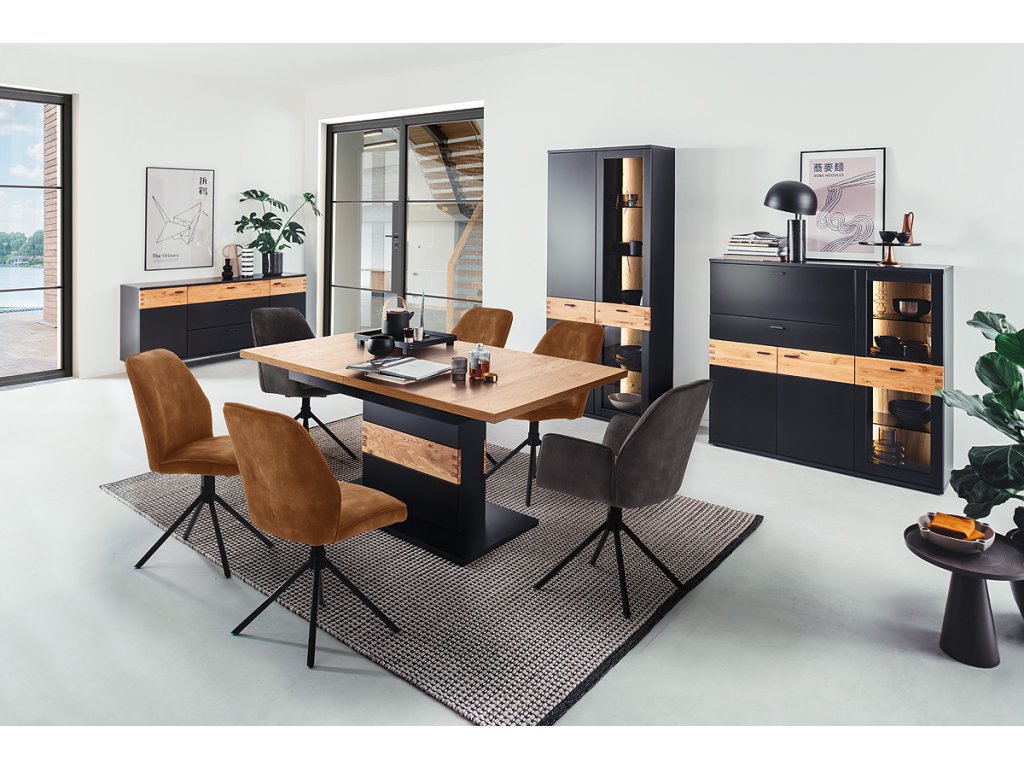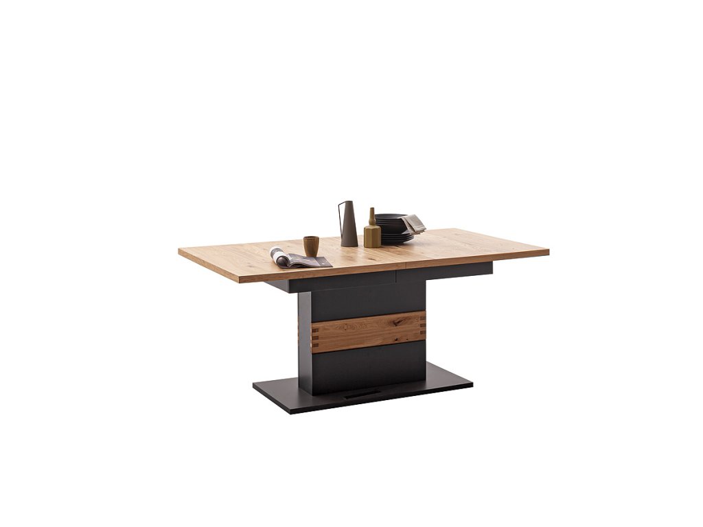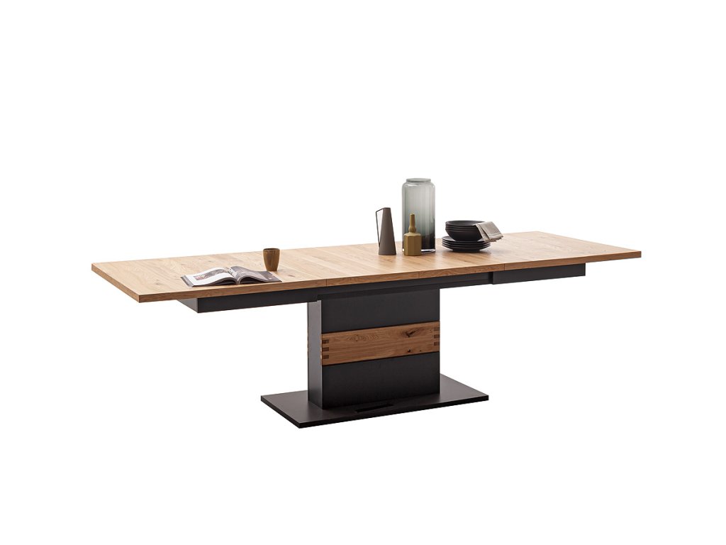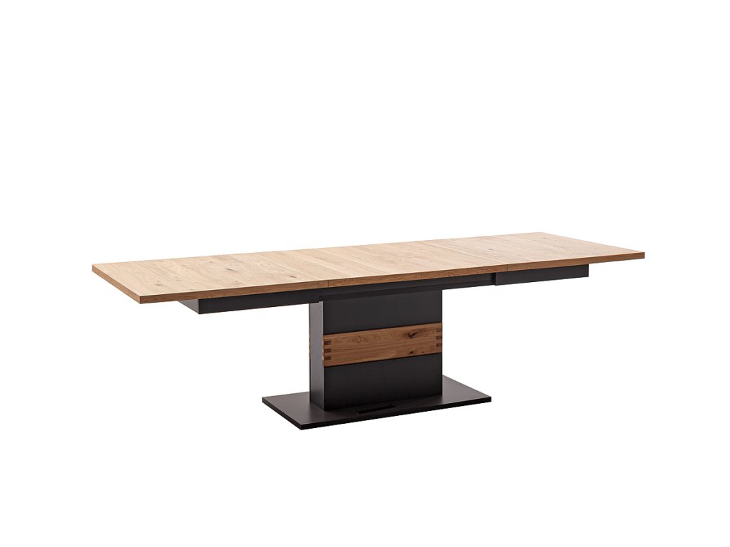 Rozkládací jídelní stůl Cesena je skvělým nábytkem hlavně do moderních kuchyní. Černosivé provedení MDF desek a stolové desky z dubové dýhy s dřevěnými lištami na hranách, poutá náležitou pozornost. Synchronní výsuvný mechanismus zaručuje naprosto jednoduché rozložení. Dvojice vkladek, každá o délce 50 cm. Stůl se v momentě prodlouží ze skvělých 180 cm na fantastických 280 cm. Už nikdy vás nepřekvapí nečekaná návštěva.