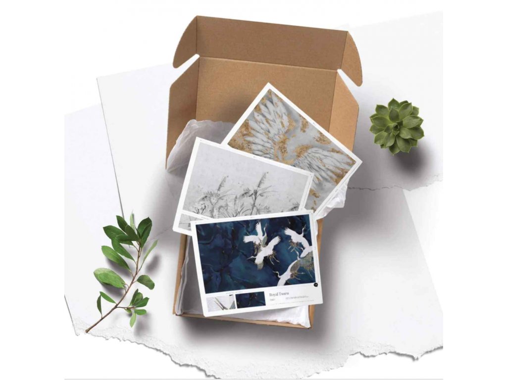 Ekologické tapety ve standardizovaných rolích. Zde si můžete zvolit sadu 3 vzorků tapet dle Vašeho výběru, stačí uvést názvy a struktury do poznámky v objednávce.