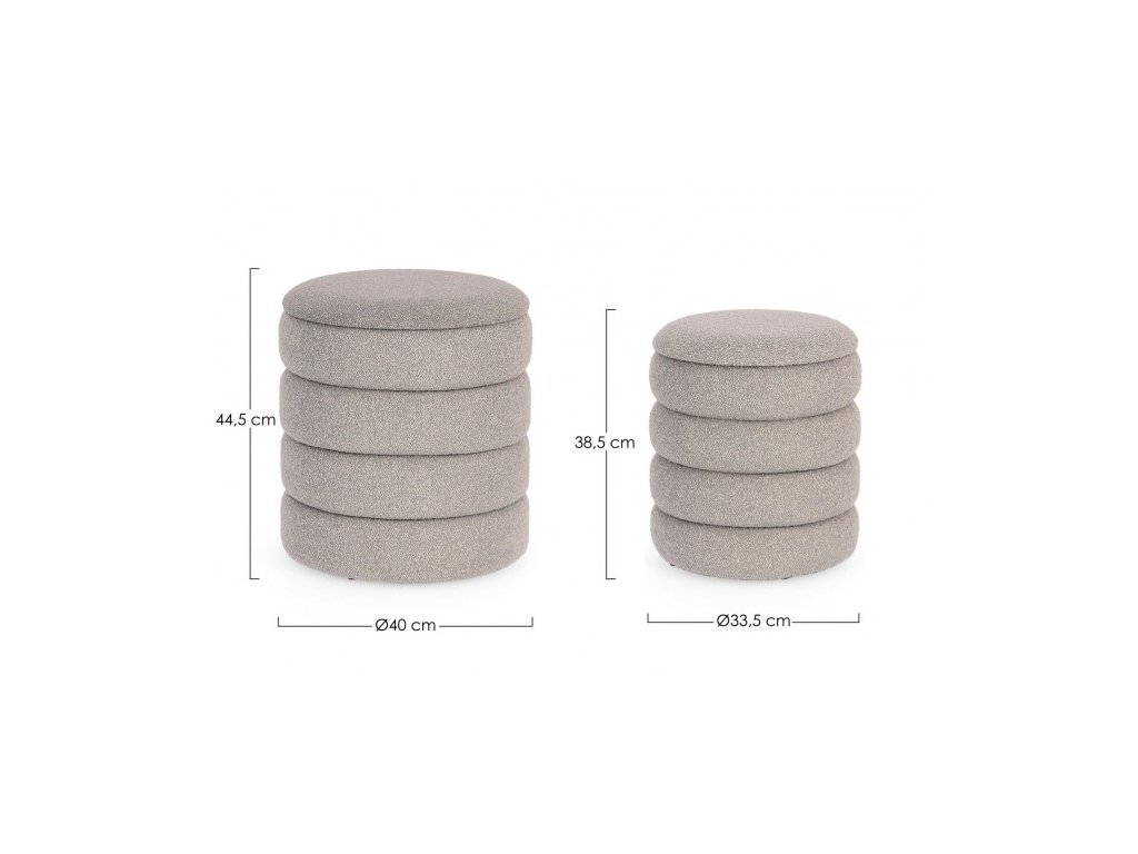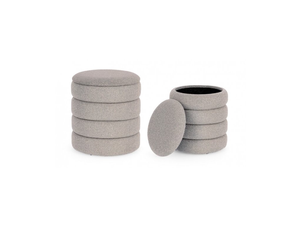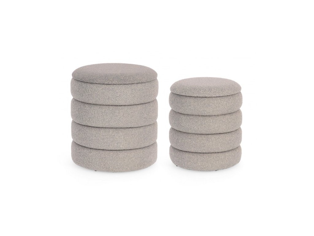 Set úložných pufů s buclé efektem bude nejen elegantním doplňkem do vašeho interiéru, ale také praktickým řešením díky úložnému prostoru. Díky originálnímu designu, který má vzhled prstence bude ideálním doplňkem do každého obývacího pokoje, ložnice nebo pracovny.