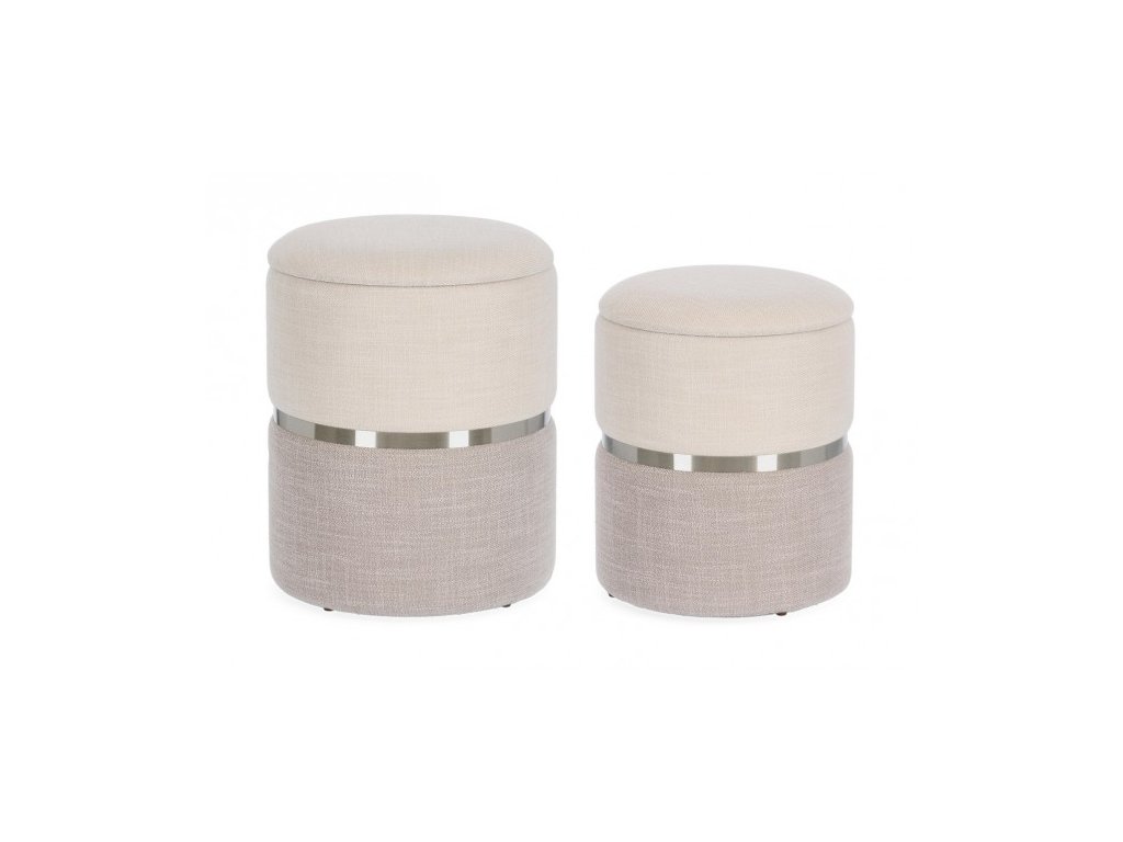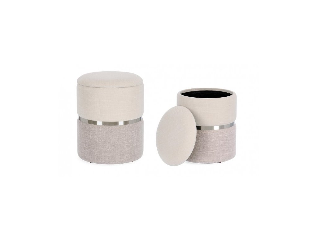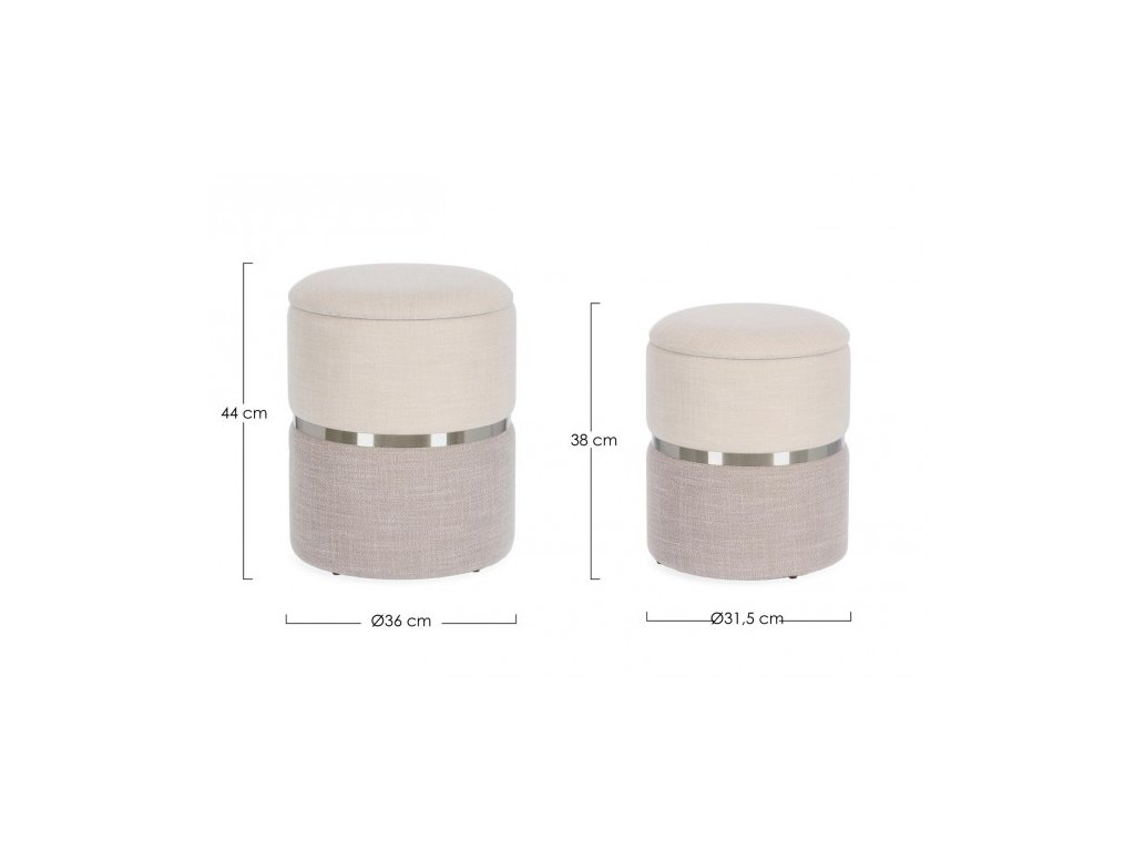 Pufy jsou vyrobeny z MDF a překližky a jsou potaženy měkkou látkou: vrchní část je béžová a spodní část šedá. Obě části jsou odděleny ozdobným proužkem ze stříbrné oceli.