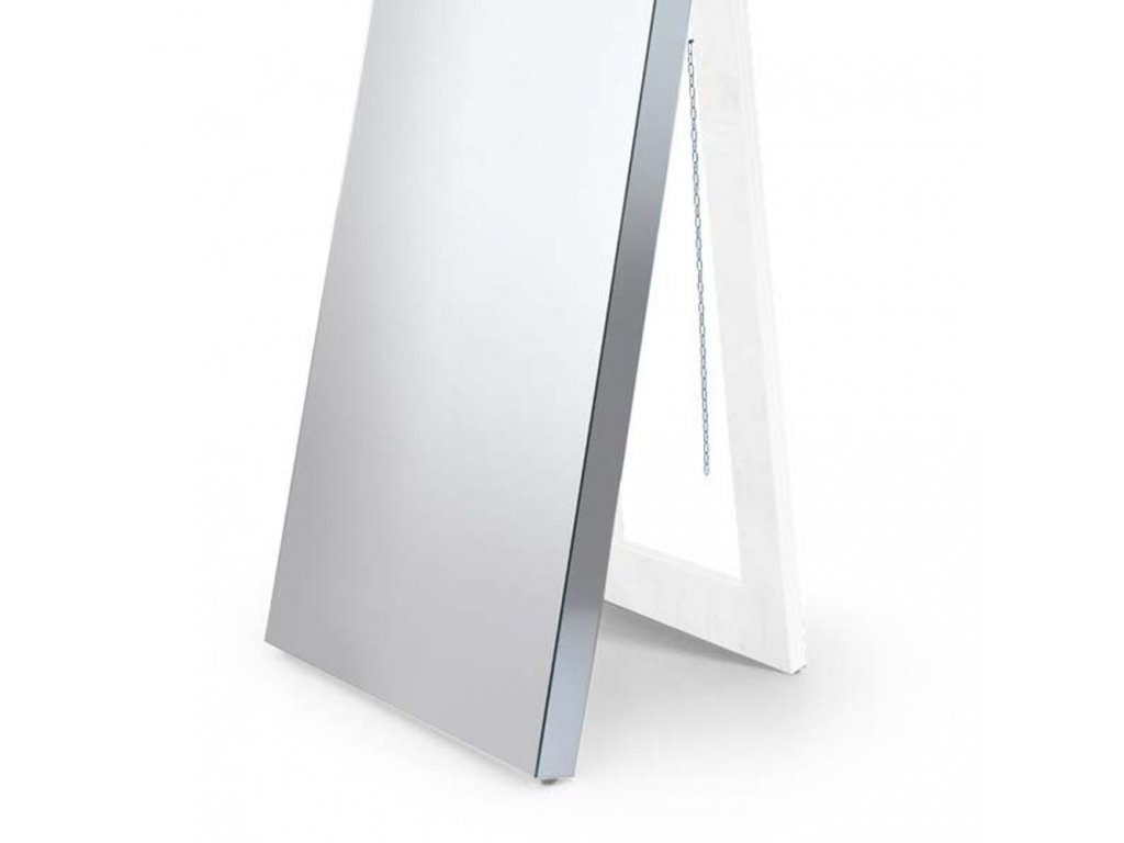 Velké stojící zrcadlo je ideální doplněk do moderního interiéru. Toho, kdo touží po jednoduchosti, grácií a nápaditosti zároveň určitě toto krásné designové zrcadlo upoutá. Jednotlivé strany zrcadla představují také zrcadlové sklo. Vzadu montované úchytky umožňují zrcadlo také zavěsit na zeď - vertikálně i horizontálně. Zrcadlo je vyrobeno z nejkvalitnějších zrcadel Opti white. Jde o mimořádně čisté, super bílé zrcadlo s mnohem vyšší transparentností skla. Zrcadla Opti white mají nižší obsah železa, což umožňuje odstranit typické zelenkavé zabarvení skla. Zrcadla jsou téměř bezbarvé, mají mnohem vyšší propustnost světla, zajišťují věrnost barev. Mají jasnější odraz a určitě světlejší okraje.