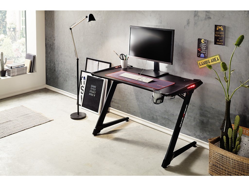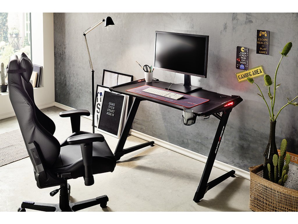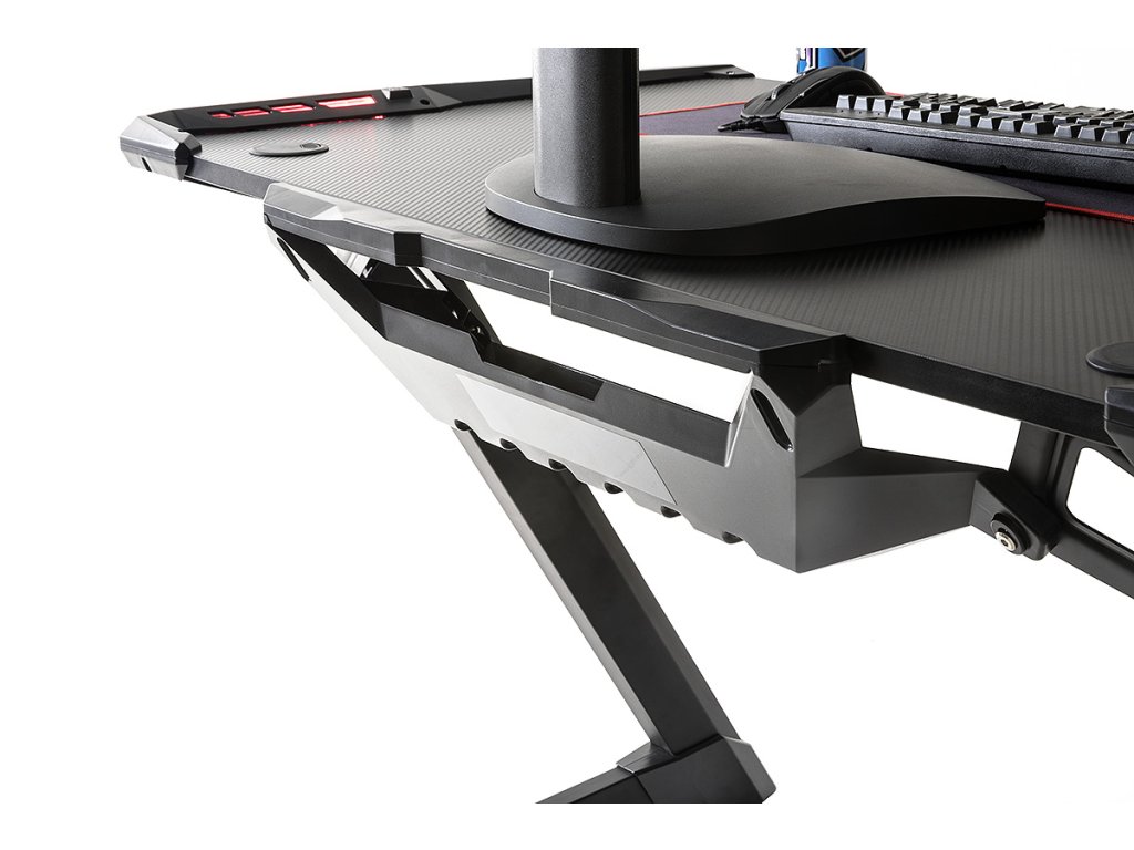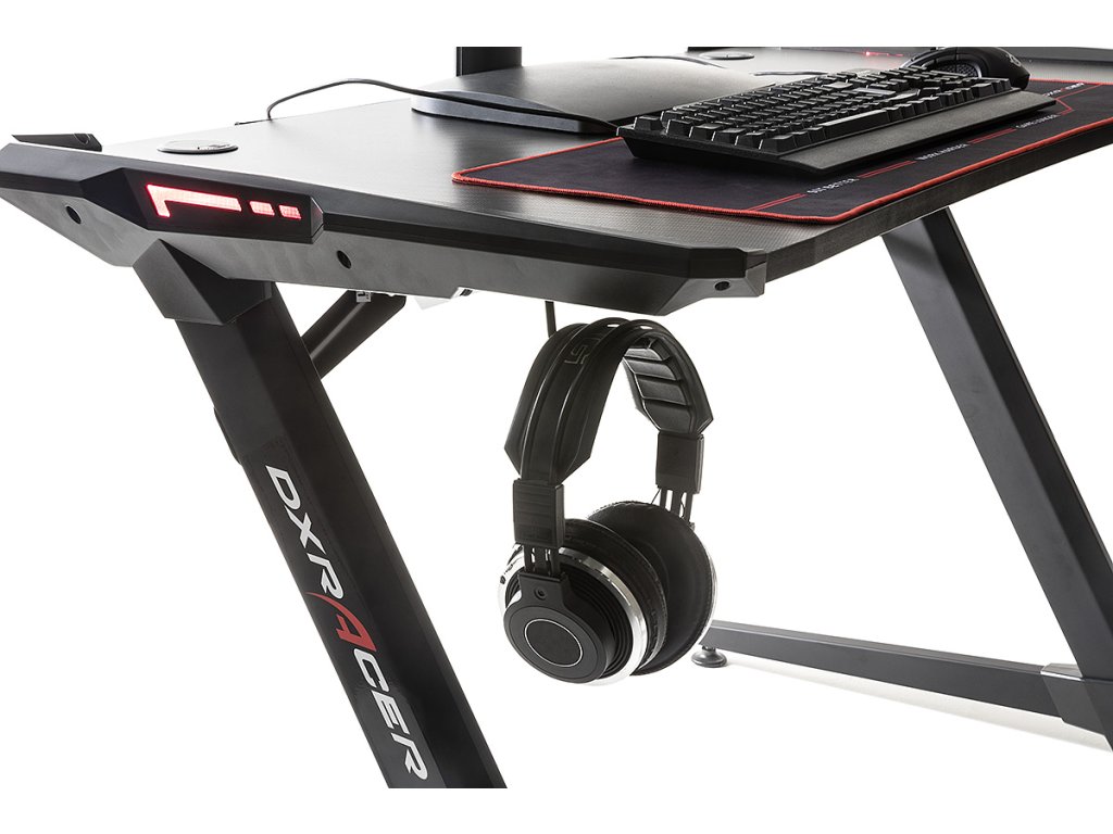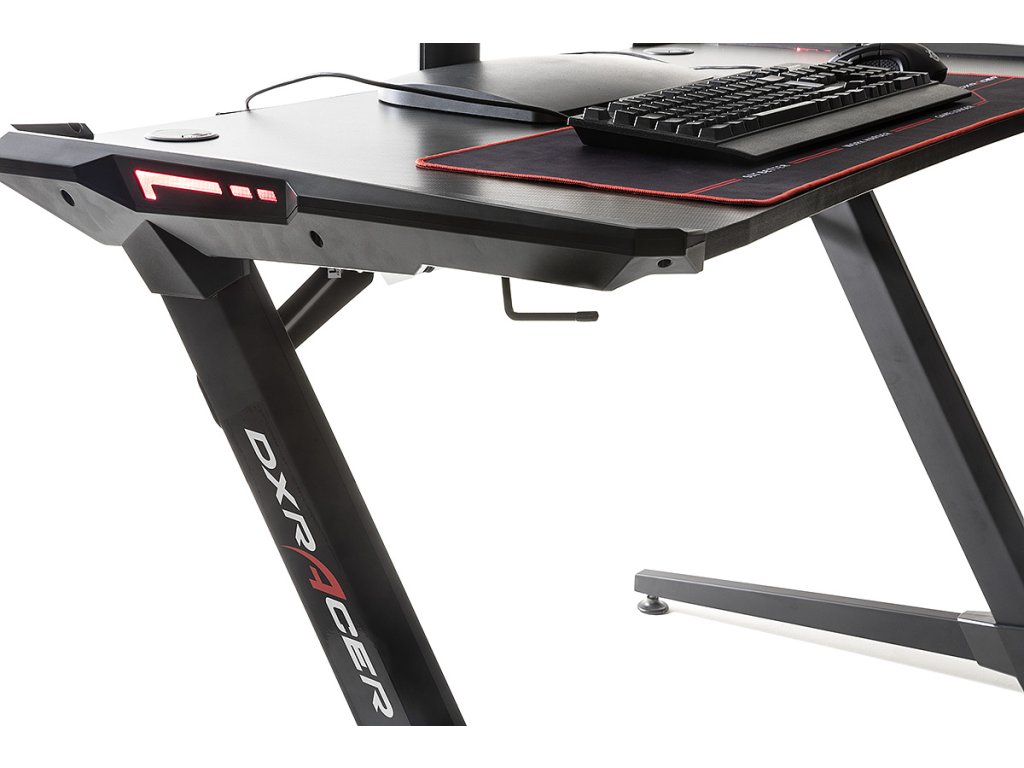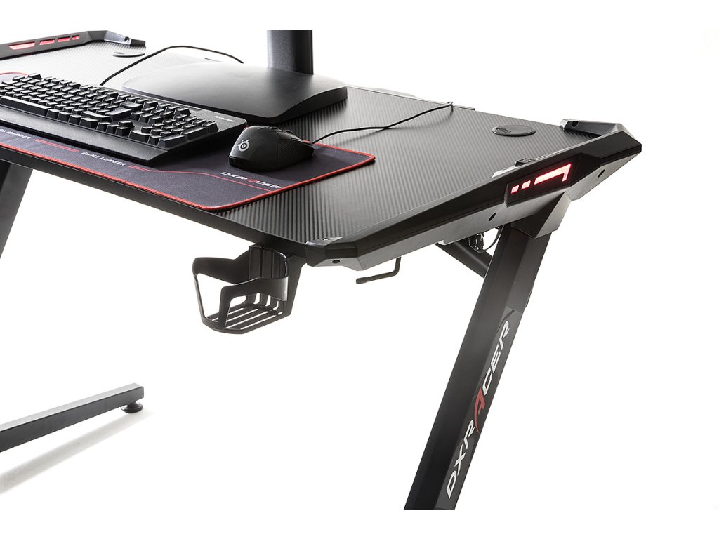 Stůl DX Racer 1 je ideálním společníkem pro hodiny zábavy. Má černý kovový rám ve tvaru písmene Z s práškovou povrchovou úpravou a vysoce kvalitní dřevěnou stolovou desku v karbonovém vzhledu. Díky elegantnímu designu a osvětlení LED se hodí do mnoha interiérů. Součástí stolu je systém pro vedení kabelů, podložka pod myš, držák na sklenici a držák na sluchátka.