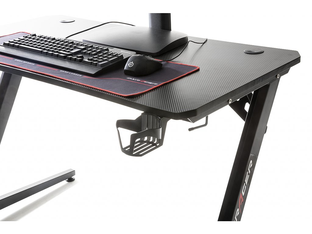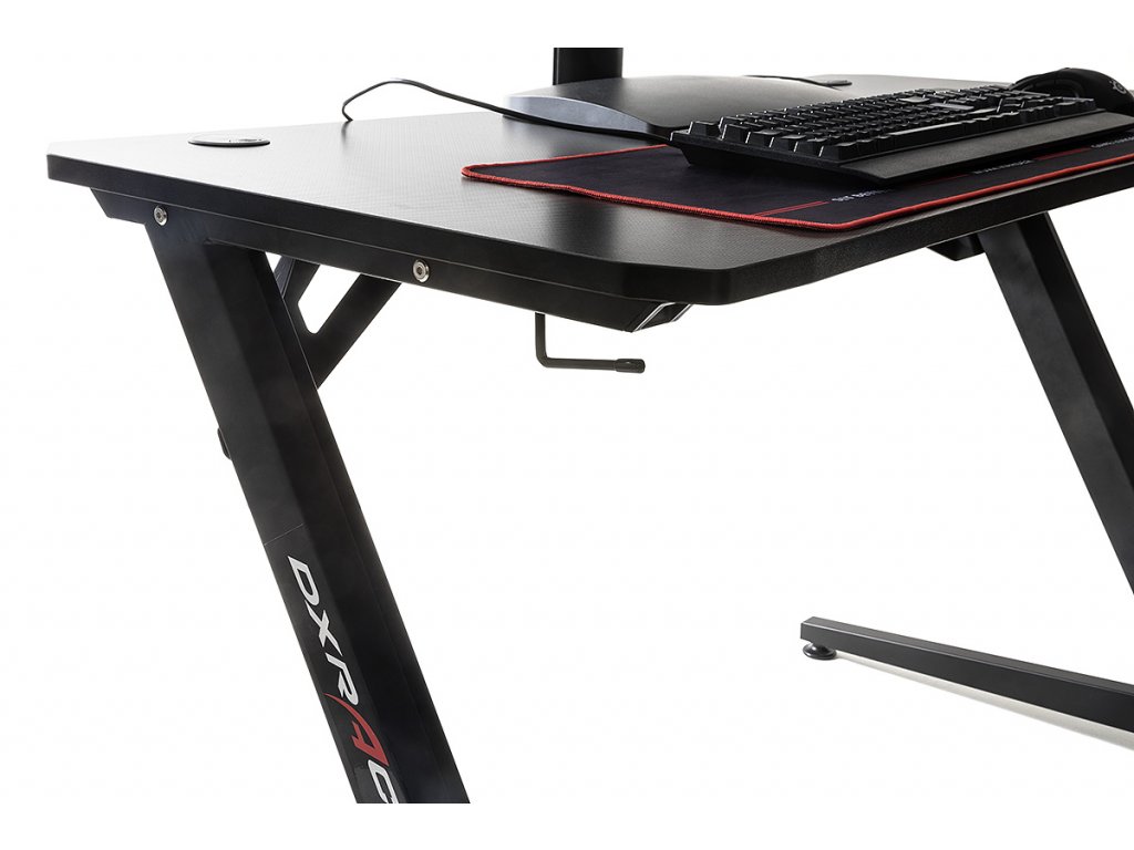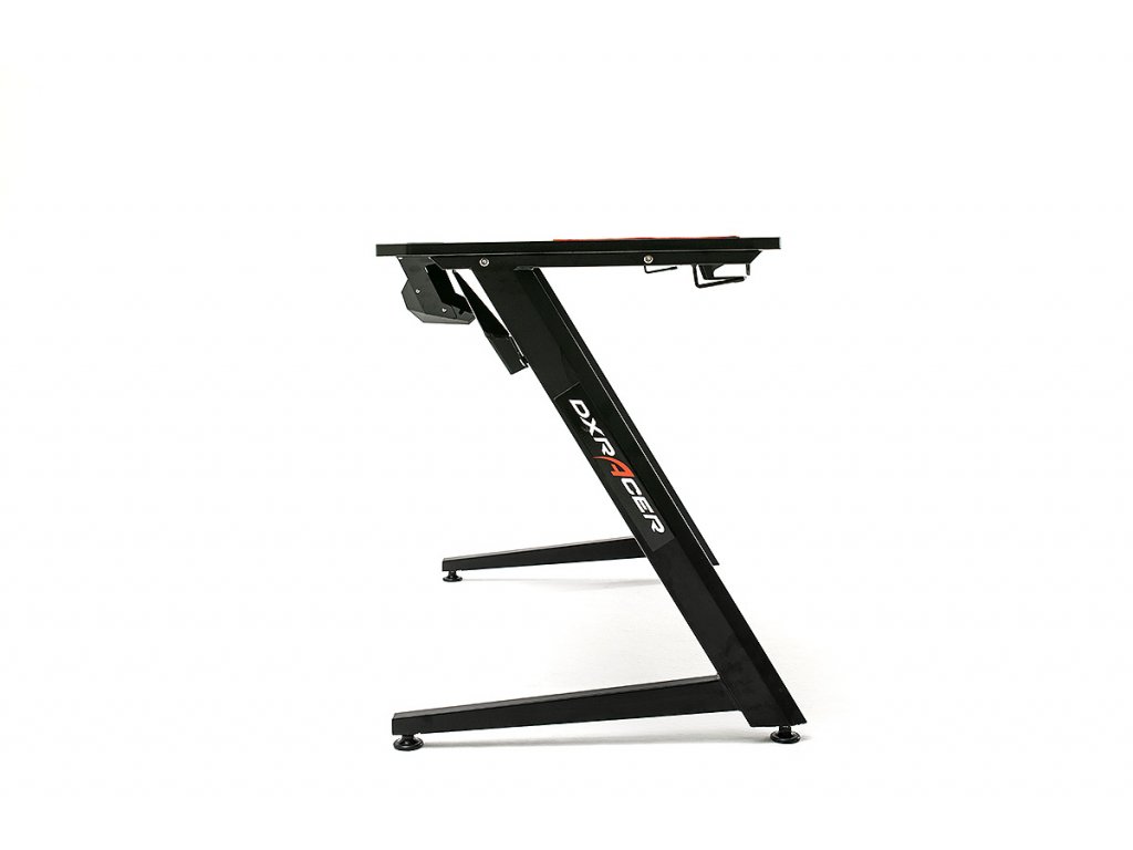 Stůl DX Racer 5 je ideálním společníkem pro hodiny zábavy při oblíbených počítačových hrách. Je však vhodný i pro práci. Má černý kovový rám ve tvaru písmene Z s práškovou povrchovou úpravou a vysoce kvalitní dřevěnou stolovou desku v karbonovém vzhledu. Díky elegantnímu designu se hodí do každého interiéru. Součástí stolu je systém pro vedení kabelů, držák na sklenici a držák na sluchátka a podložka pod myš.