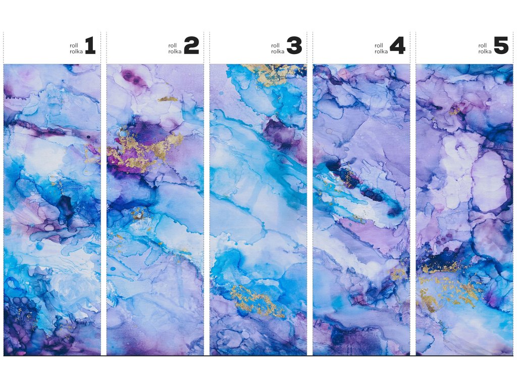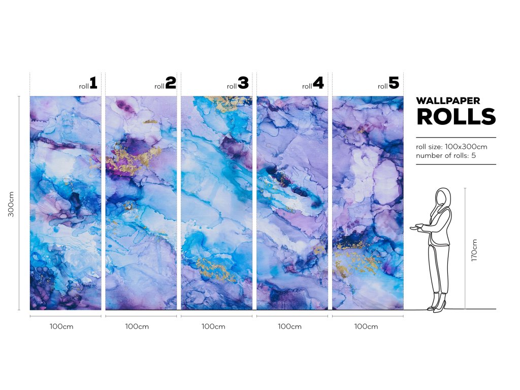 Tapety se zlatými, stříbrnými a měděnými prvky jsou vytvořeny vytištěním textury příslušnou barvou do materiálu.