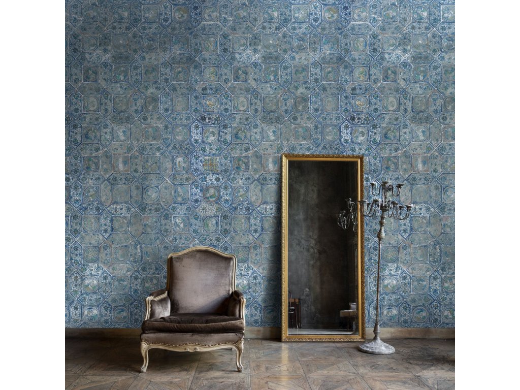 Tapety se zlatými, stříbrnými a měděnými prvky jsou vytvořeny vytištěním textury příslušnou barvou do materiálu.