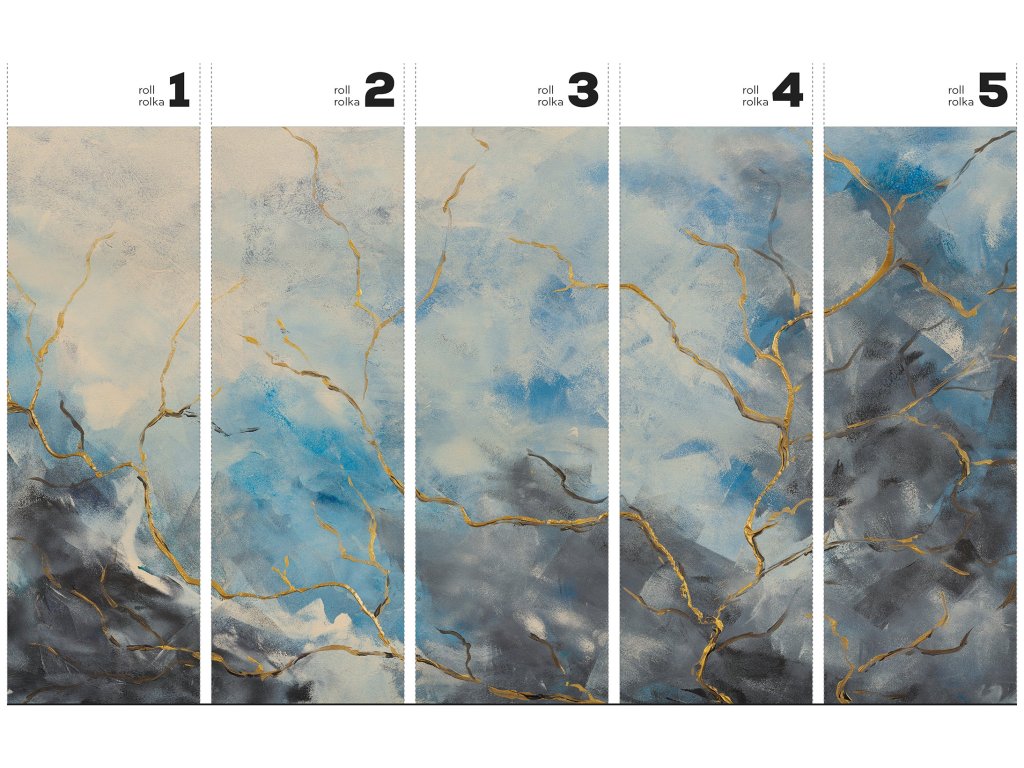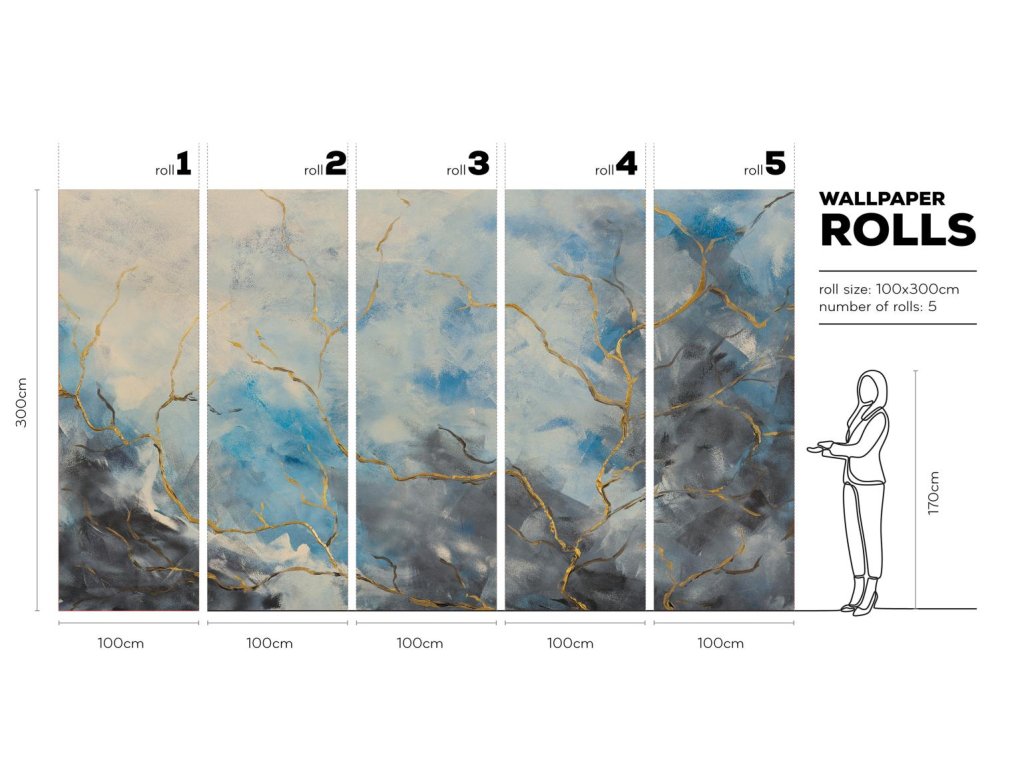 Tapety se zlatými, stříbrnými a měděnými prvky jsou vytvořeny vytištěním textury příslušnou barvou do materiálu.