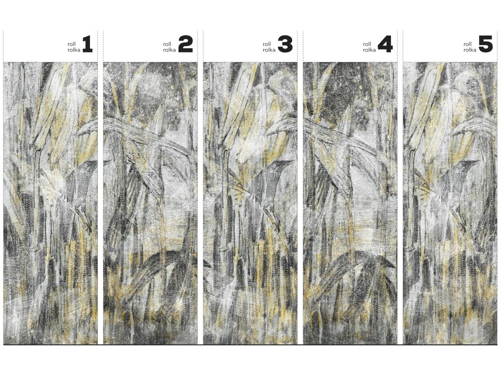Tapety se zlatými, stříbrnými a měděnými prvky jsou vytvořeny vytištěním textury příslušnou barvou do materiálu.