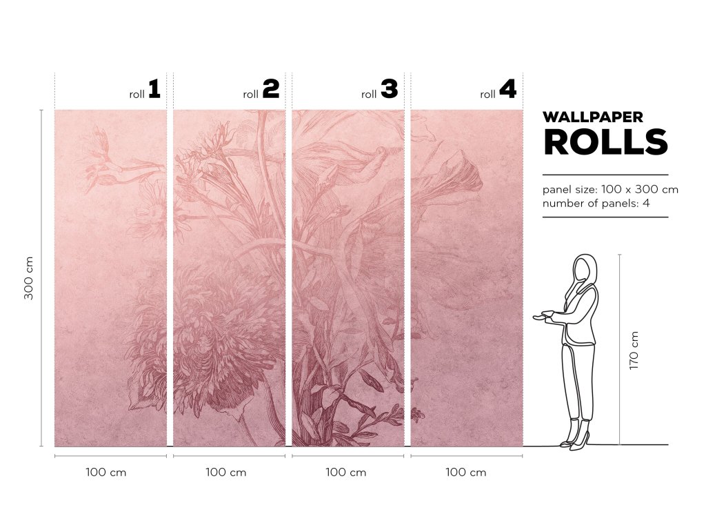 Tapeta je připravena na tupý spoj. Aplikace je rychlá, jednoduchá, s lepidlem na tapety, lepidlo se nanáší pouze na zeď. Lepidlo není součástí balení.