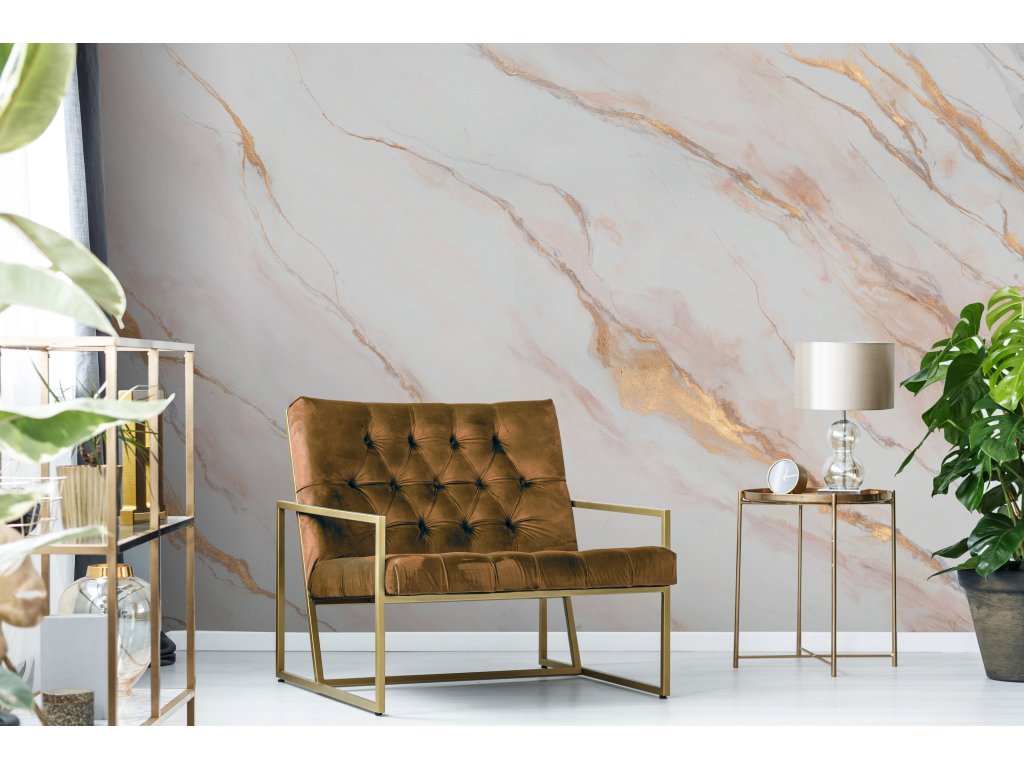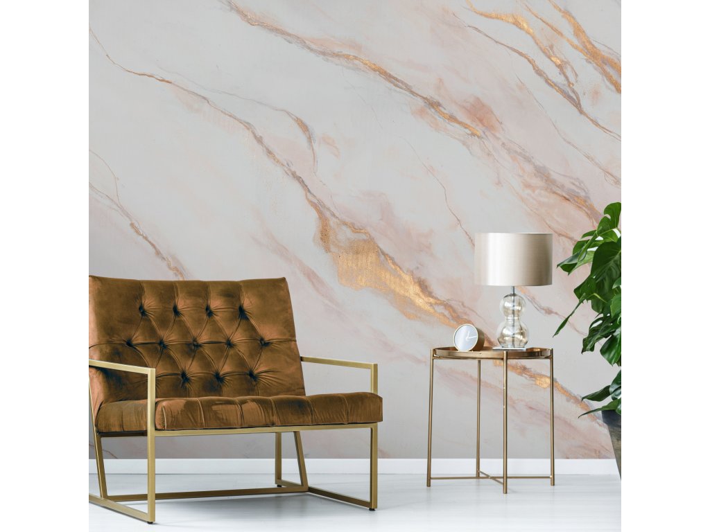 Tapety se zlatými, stříbrnými a měděnými prvky jsou vytvořeny vytištěním textury příslušnou barvou do materiálu.