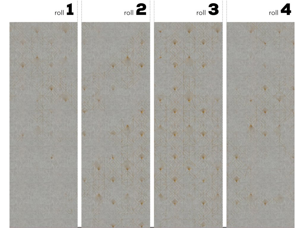 Tapety se zlatými, stříbrnými a měděnými prvky jsou vytvořeny vytištěním textury příslušnou barvou do materiálu.