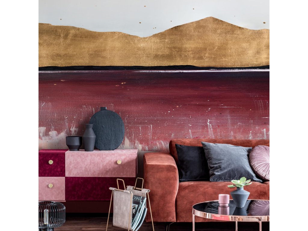 Tapety se zlatými, stříbrnými a měděnými prvky jsou vytvořeny vytištěním textury příslušnou barvou do materiálu.