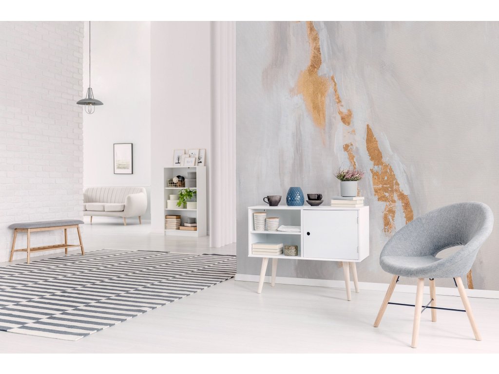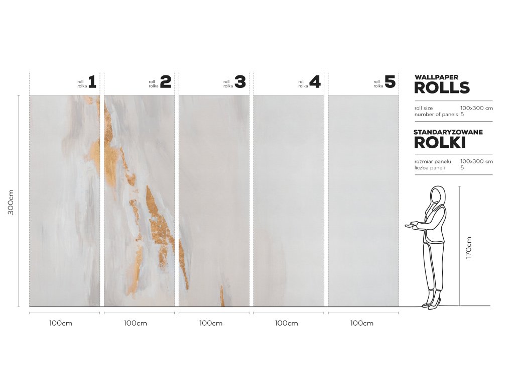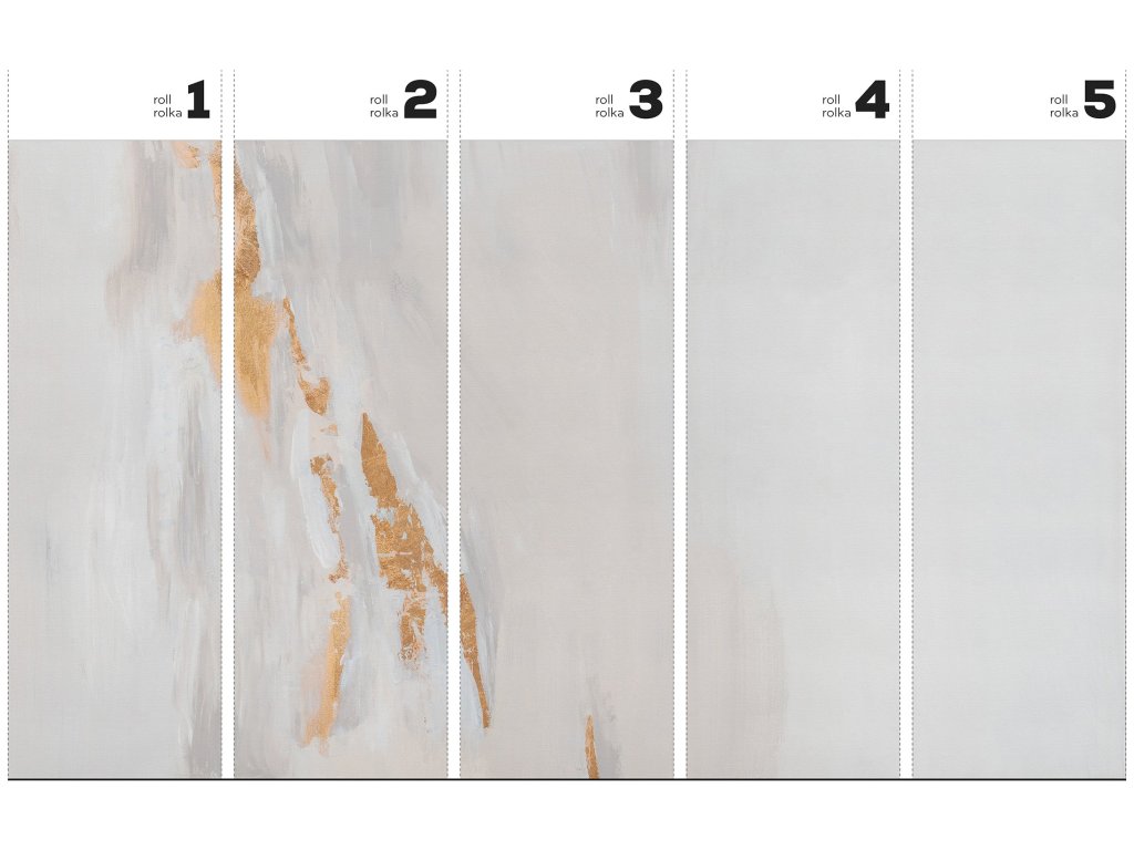 Tapety se zlatými, stříbrnými a měděnými prvky jsou vytvořeny vytištěním textury příslušnou barvou do materiálu.